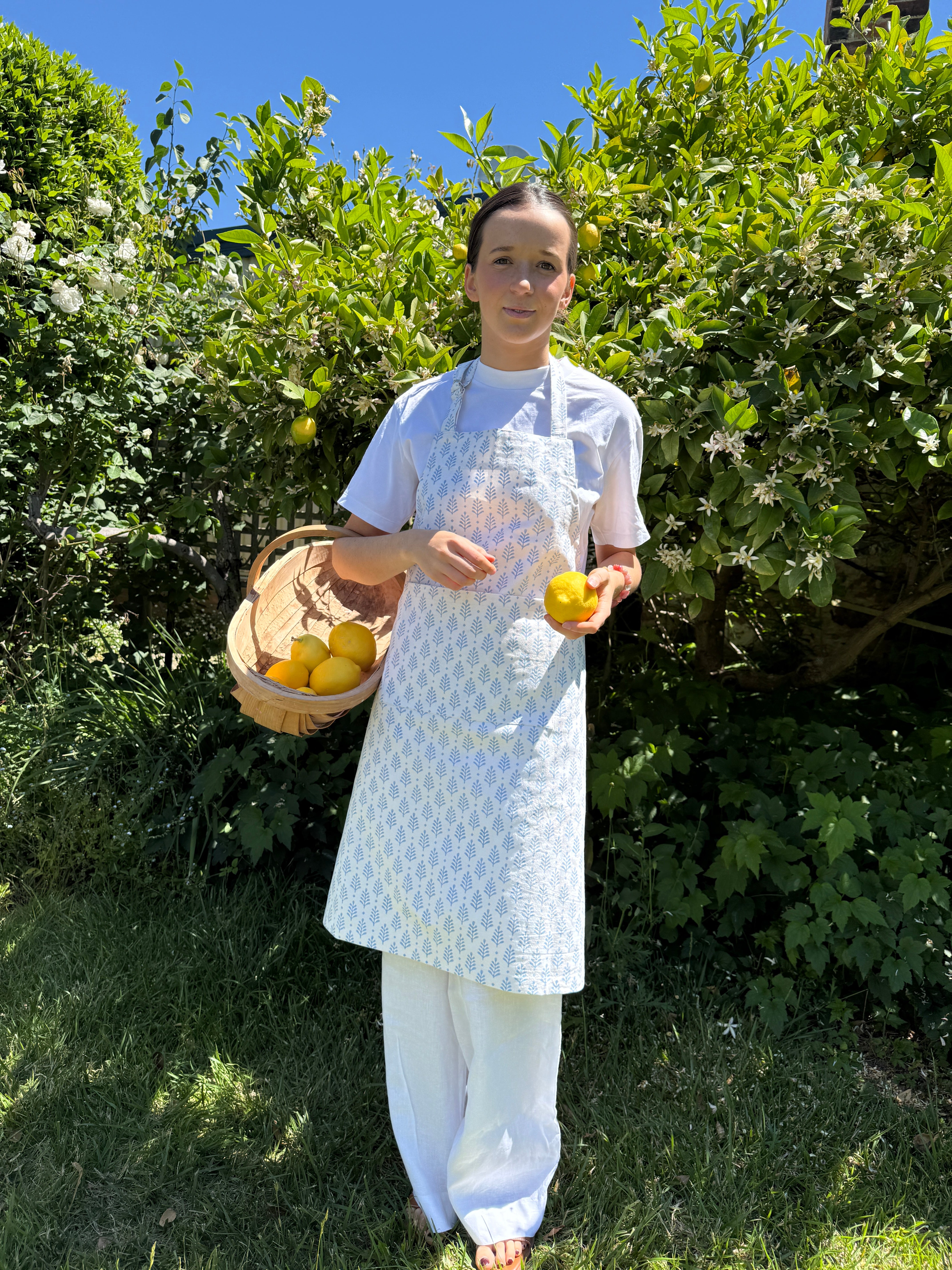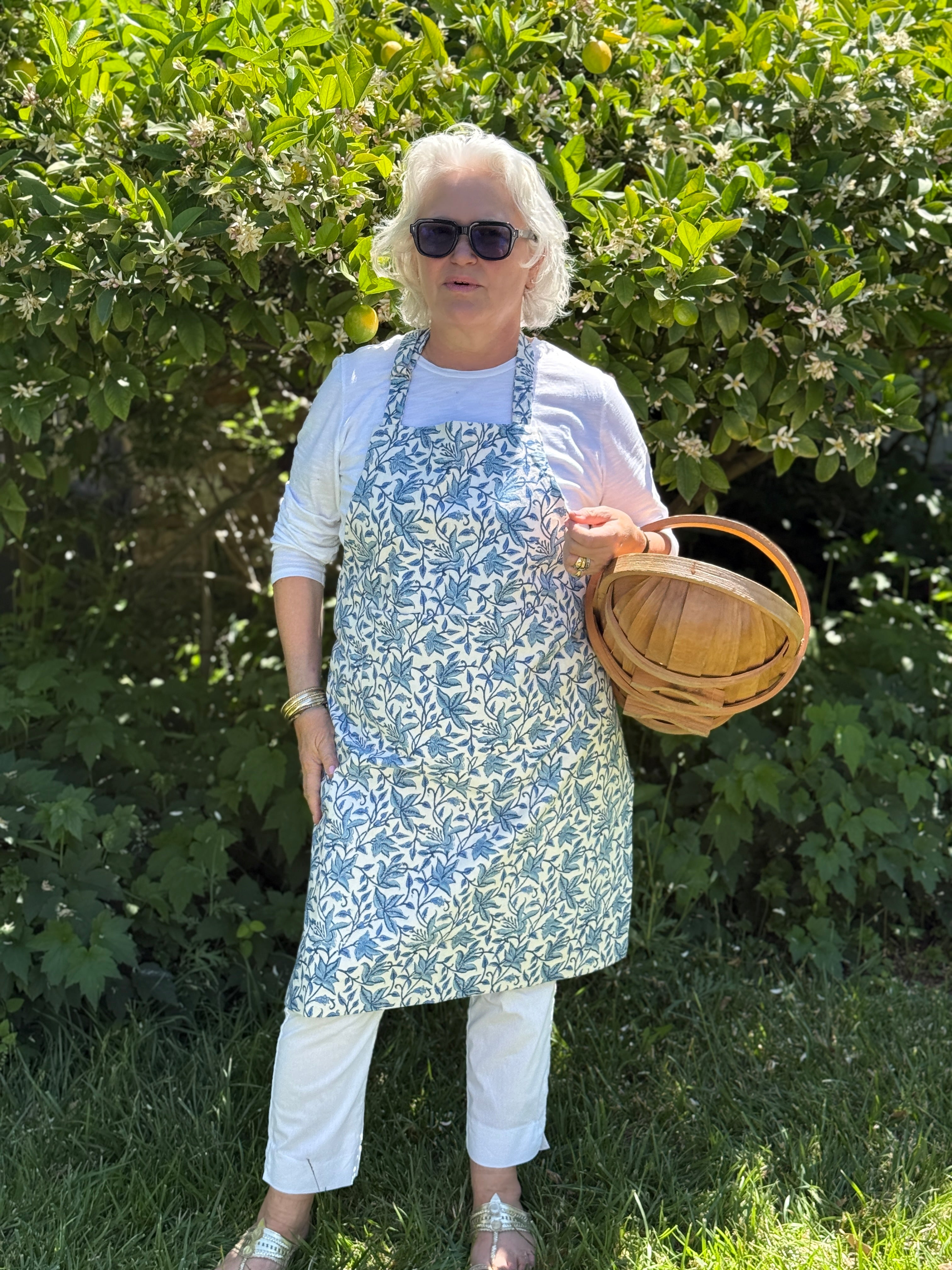 Blue & White Block Printed Cotton Apron