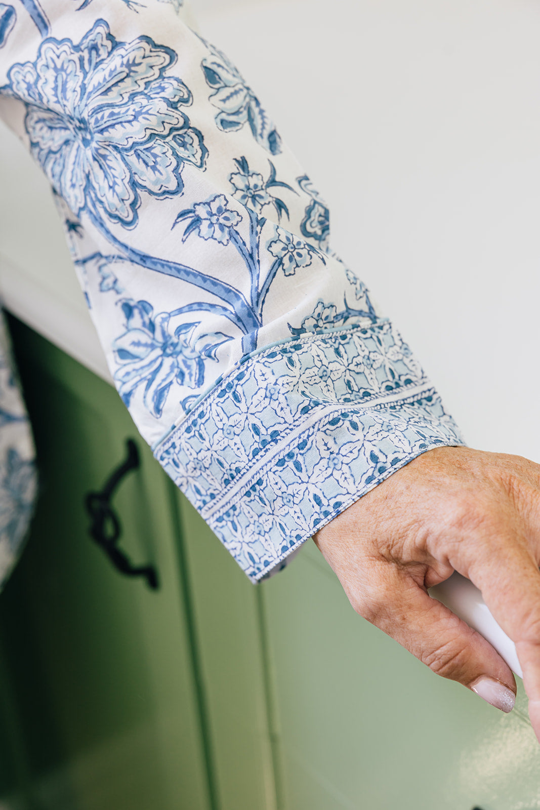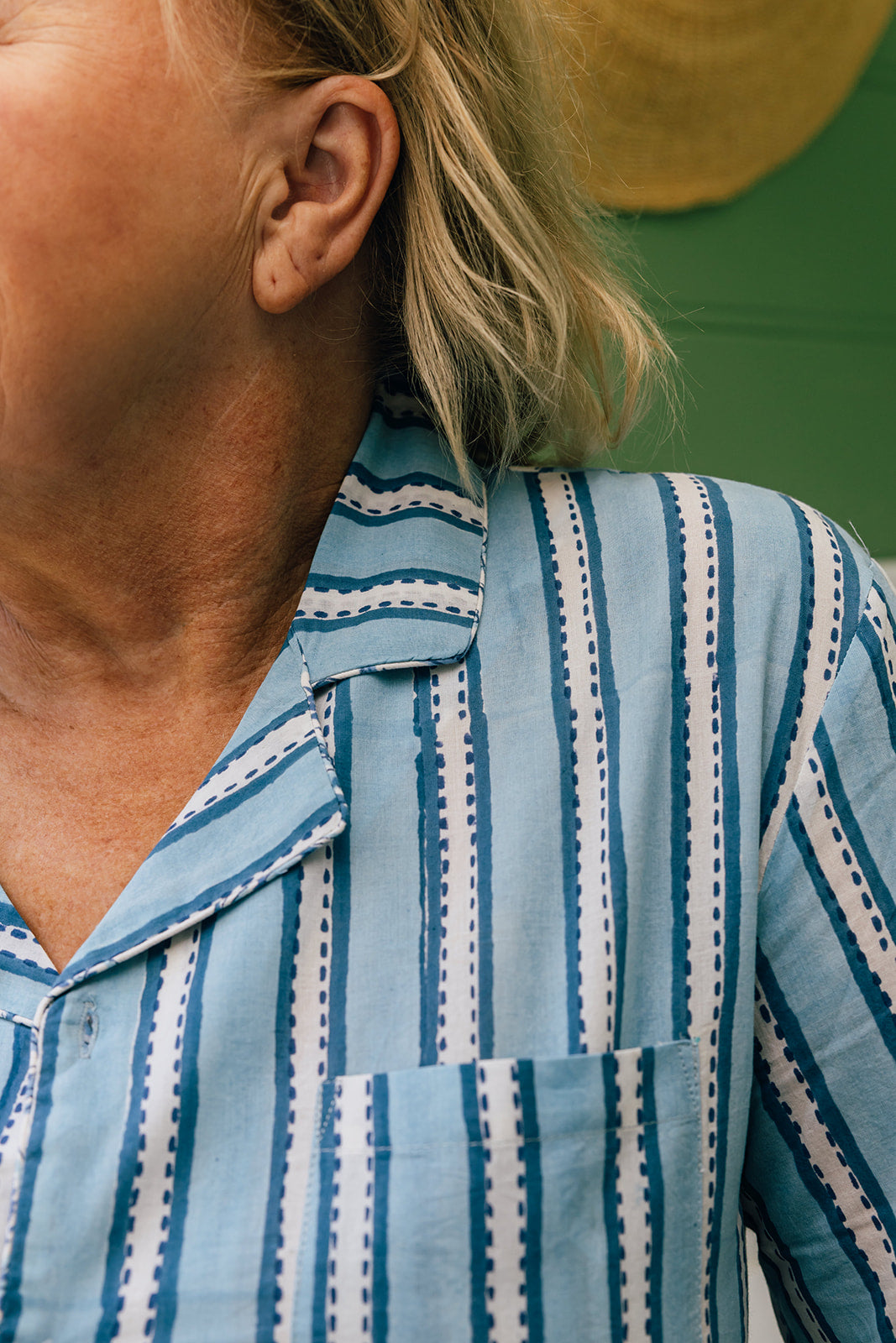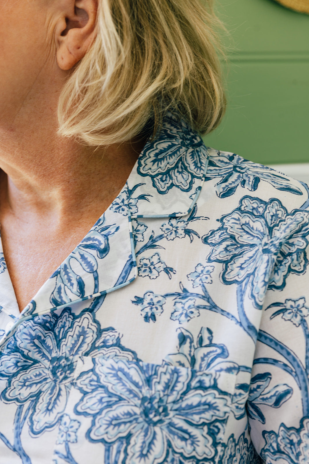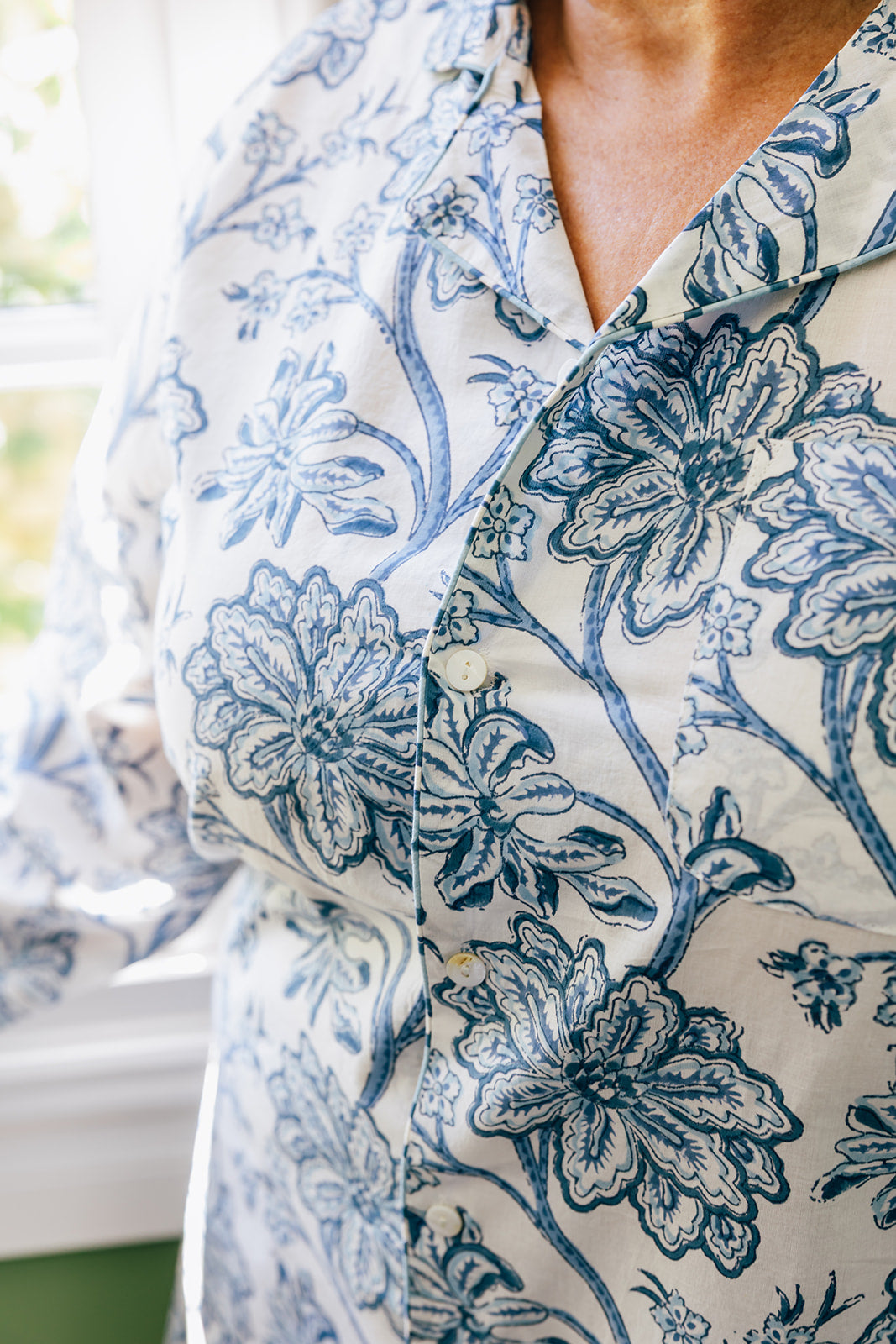 Wrap yourself in comfort and timeless style with this beautifully tailored blue and white pyjama set, crafted in soft, breathable cotton and hand block printed by skilled artisans. Each pattern is stamped by hand, giving the fabric a gentle individuality and a touch of traditional charm.
