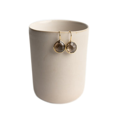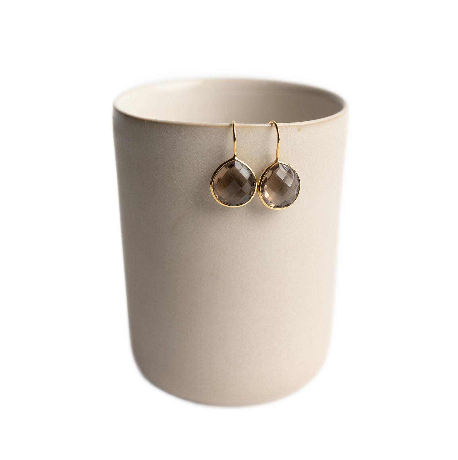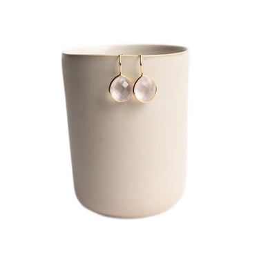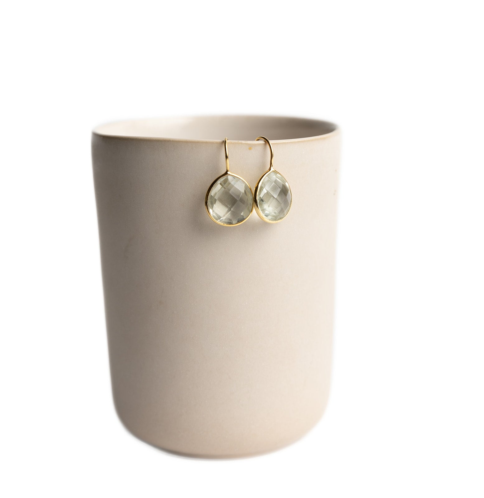 Elegant, timeless, and effortlessly refined, these micron gold-plated sterling silver earrings feature a single large round facetted semi-precious stone in a classic bezel setting. Handmade in Jaipur, India, home to some of the world’s finest stone cutters, each pair is lightweight, comfortable, and designed for everyday wear or special occasions.