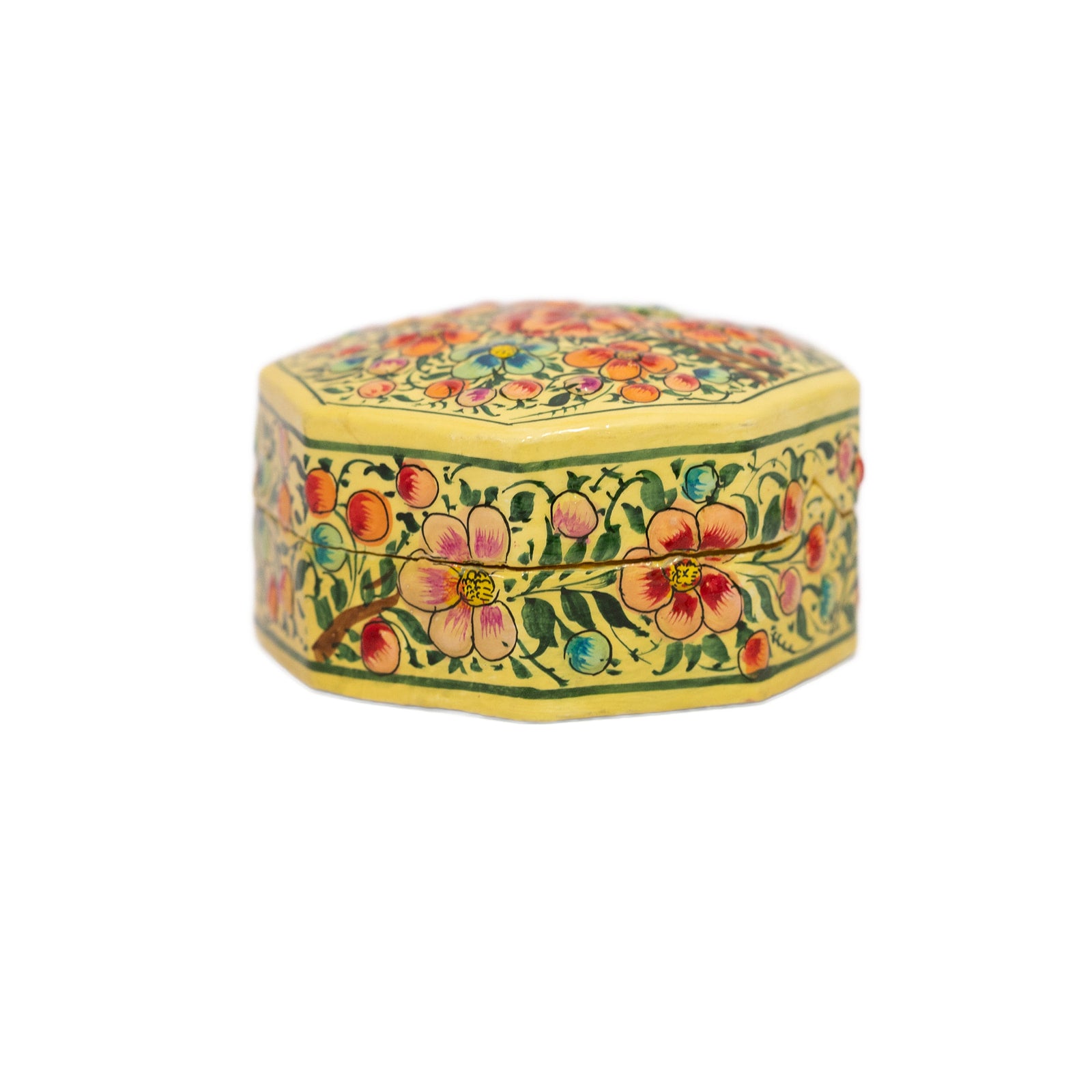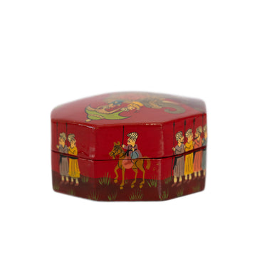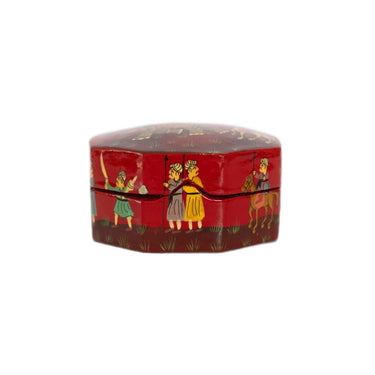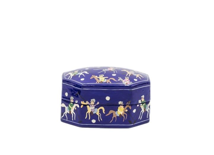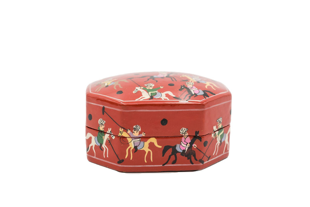 Hand Painted Papiér Mâché Lacquer Octagonal Pin Box