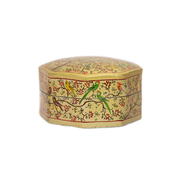 Made and painted mostly by Kashmiri men using natural materials such as recycled paper with brushes for painting made from squirrel & cat hair & duck quill, our boxes are a nod to the past when little was wasted and time allowed the gentle and slow creation of beauty. As each piece is painted one at a time by an individual person, patterns and colours may differ from one to another. This is to be expected and celebrated.