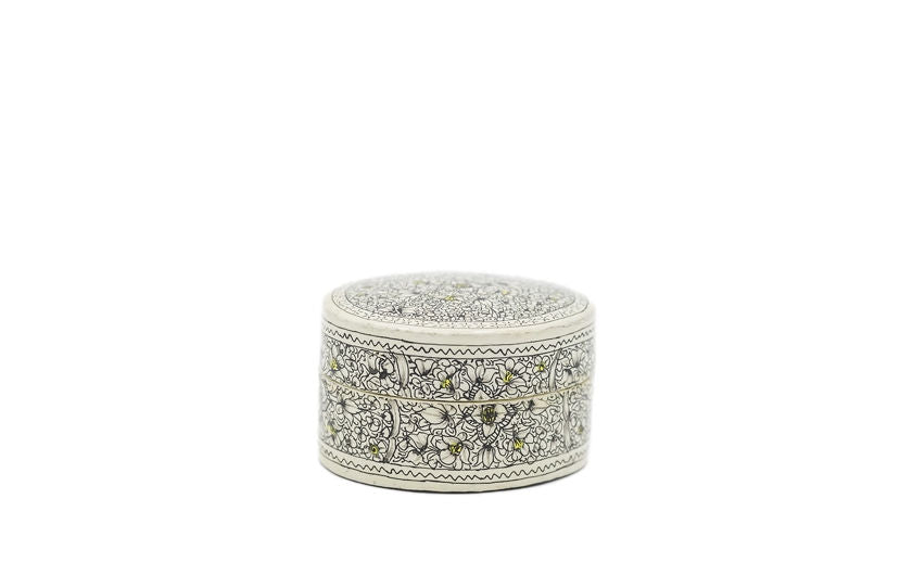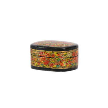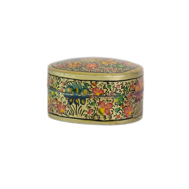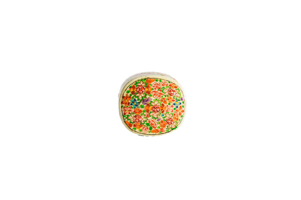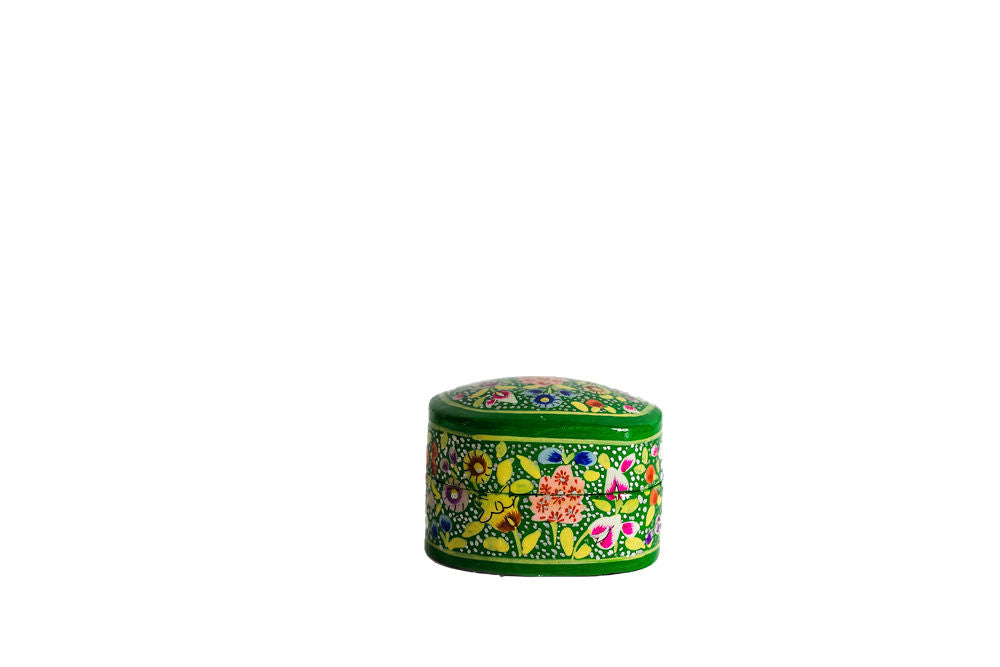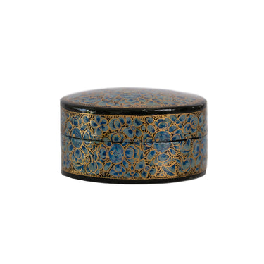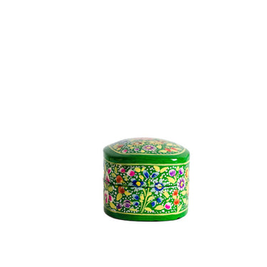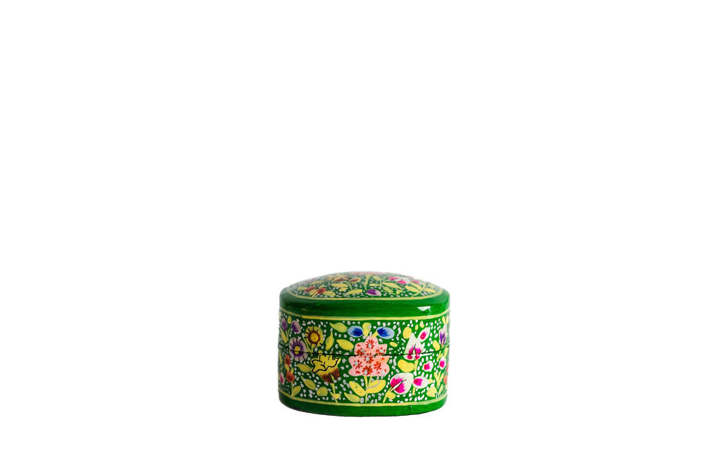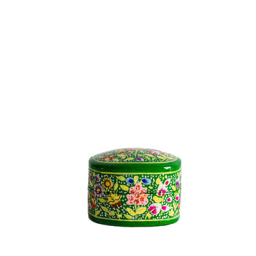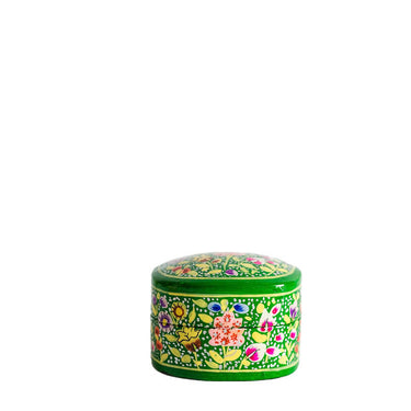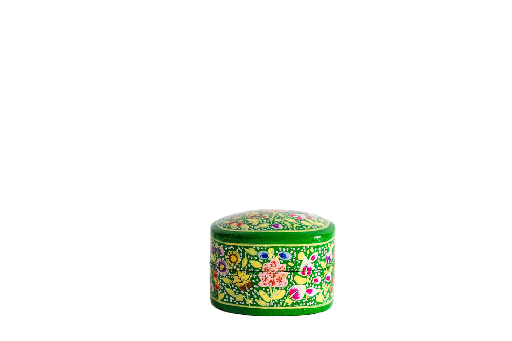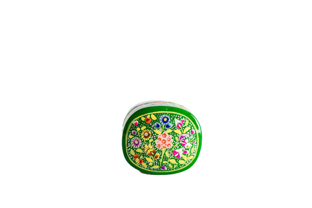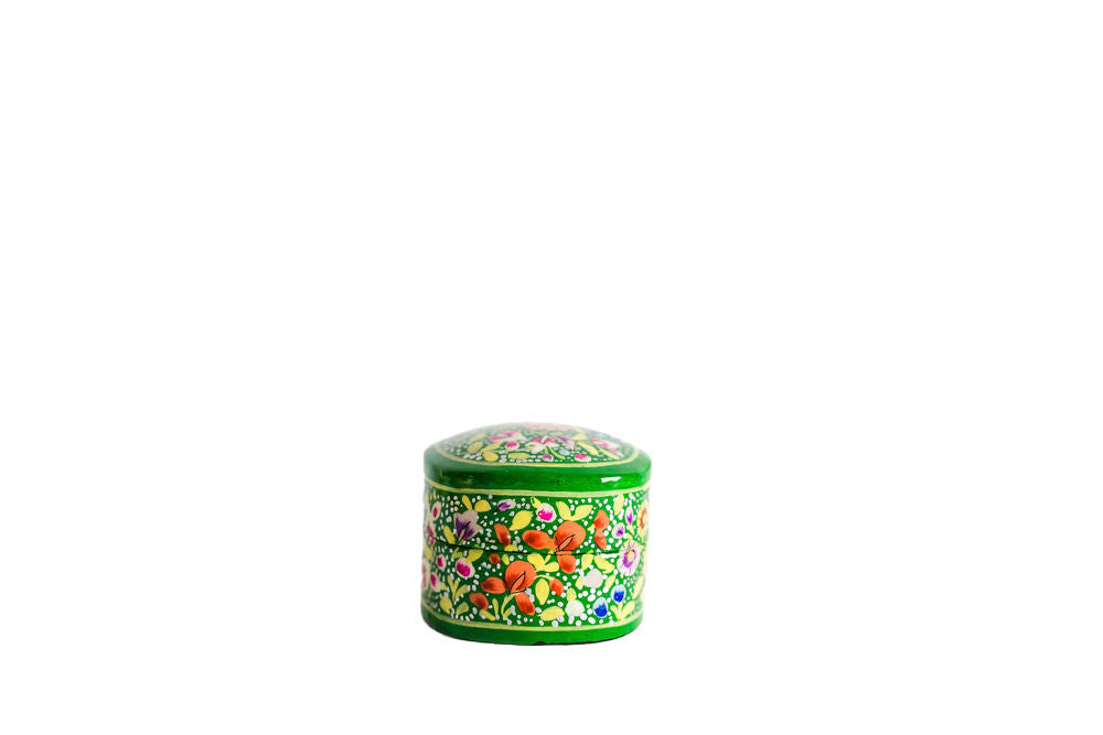 Made and painted mostly by Kashmiri men using natural materials such as recycled paper with brushes for painting made from squirrel & cat hair & duck quill, our boxes are a nod to the past when little was wasted and time allowed the gentle and slow creation of beauty. As each piece is painted one at a time by an individual person, patterns and colours may differ from one to another. This is to be expected and celebrated.