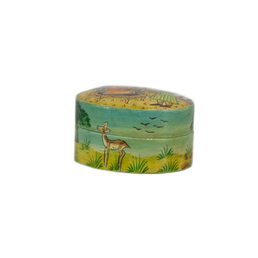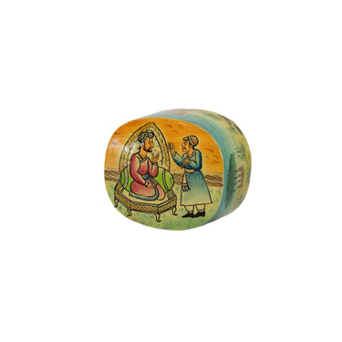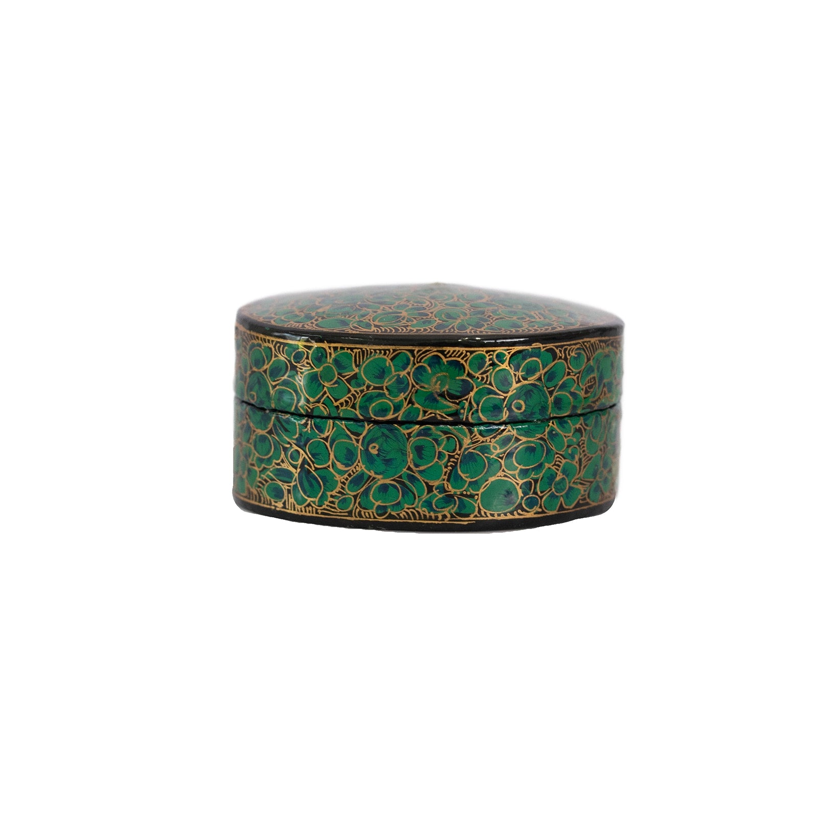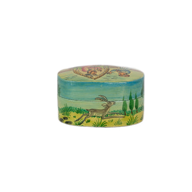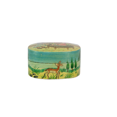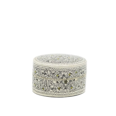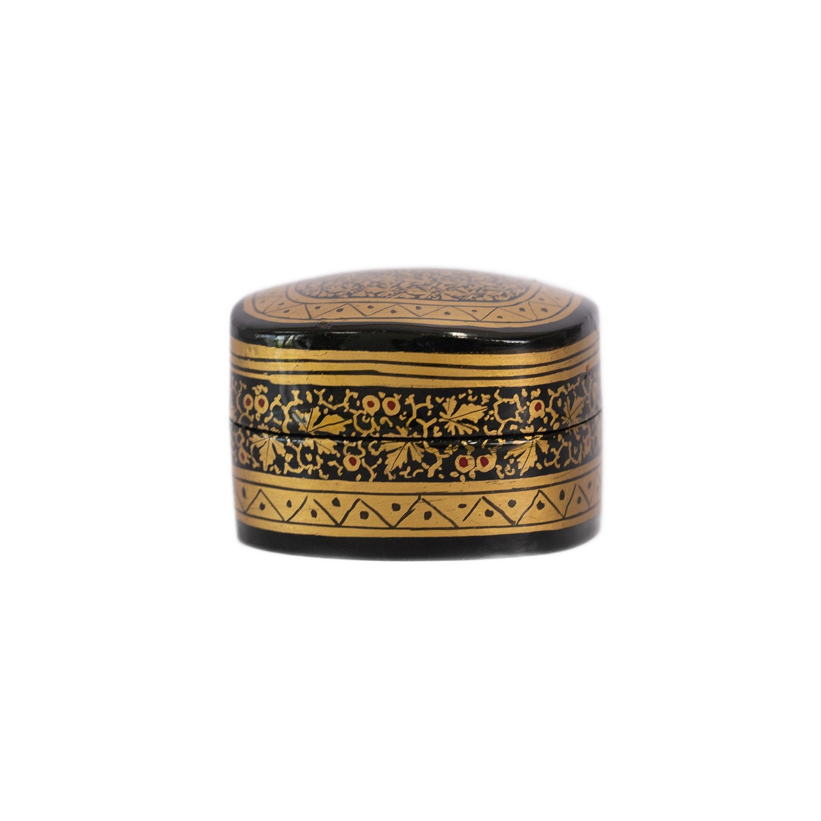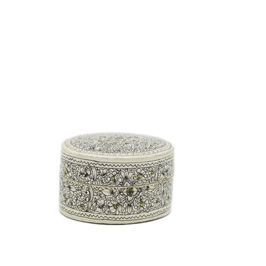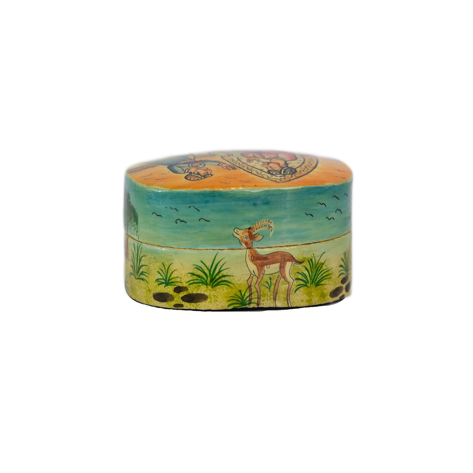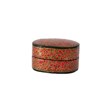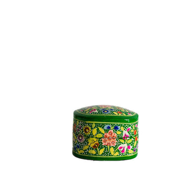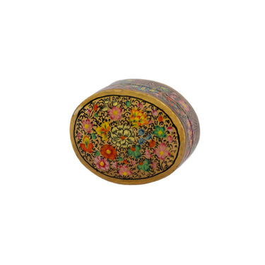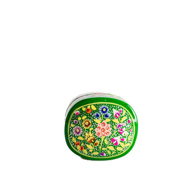 Made and painted mostly by Kashmiri men using natural materials such as recycled paper with brushes for painting made from squirrel & cat hair & duck quill, our boxes are a nod to the past when little was wasted and time allowed the gentle and slow creation of beauty. As each piece is painted one at a time by an individual person, patterns and colours may differ from one to another. This is to be expected and celebrated.