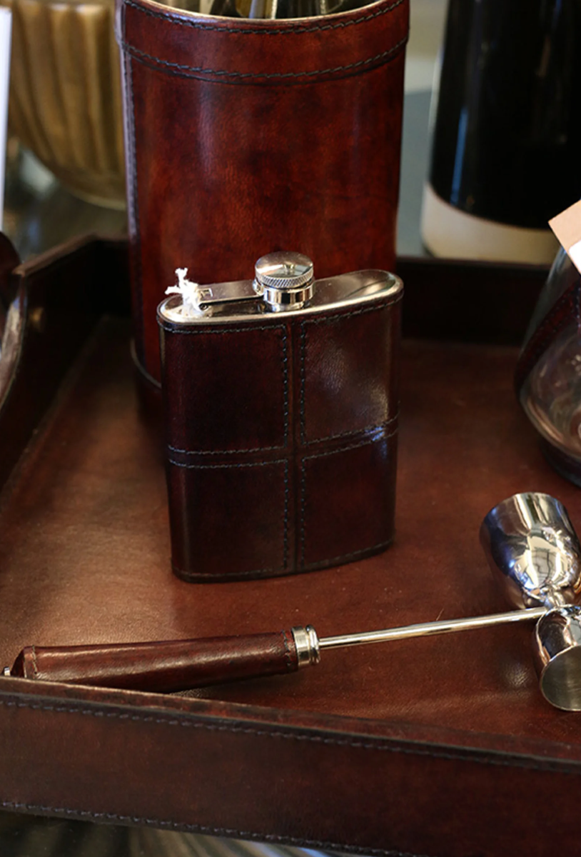 Leather Hip Flask in Dark Brown with Nickle Detail