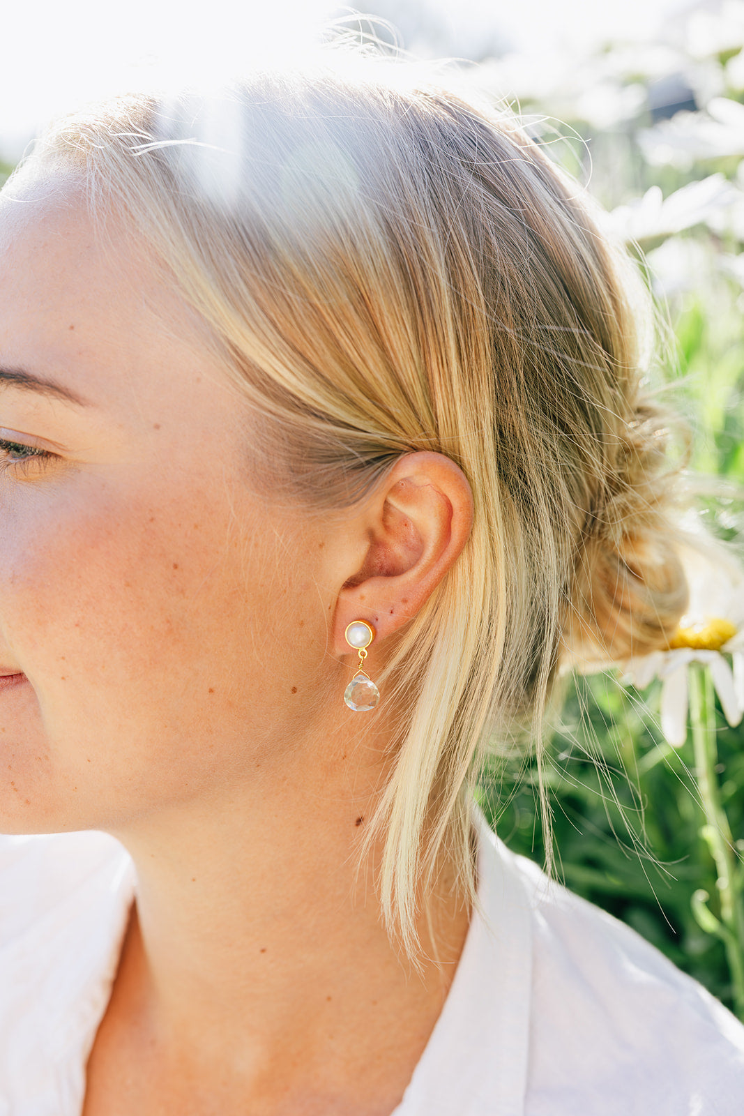 Made in sterling silver with a warm gold-plated finish, each tear-shaped stone is carefully selected and hand set to highlight its natural beauty. The petite drop makes these earrings an effortless choice for everyday wear, while their subtle elegance transitions easily into evening.