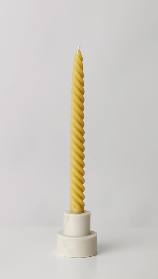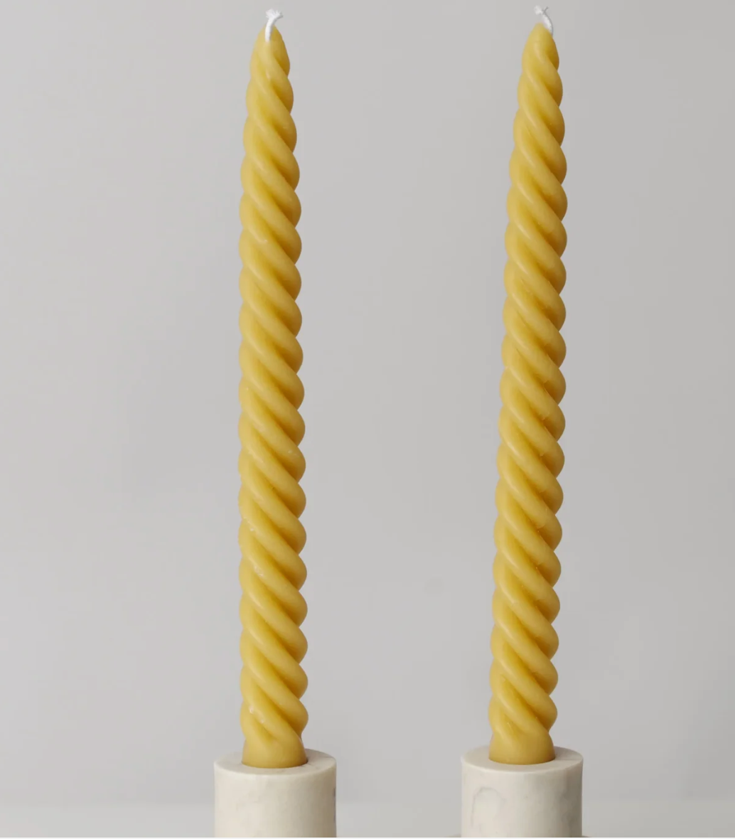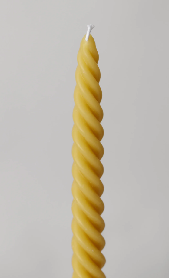 The Twisted Dinner Taper Candle stands 30cm tall and is sold as a pair. Beeswax naturally ranges in colour from pale buttery yellow to rich honey and caramel tones and is naturally scented by honey. These candles are handmade and hand poured, so expect slight imperfections and unique variations in colour - all part of the beauty, in our opinion!