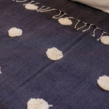 Cover your world in beautiful, glorious pompoms! On a cream or navy base, our beautiful Bazaar dot cotton bedspread is a wonderful statement piece, so typically Moroccan and so typically chic.