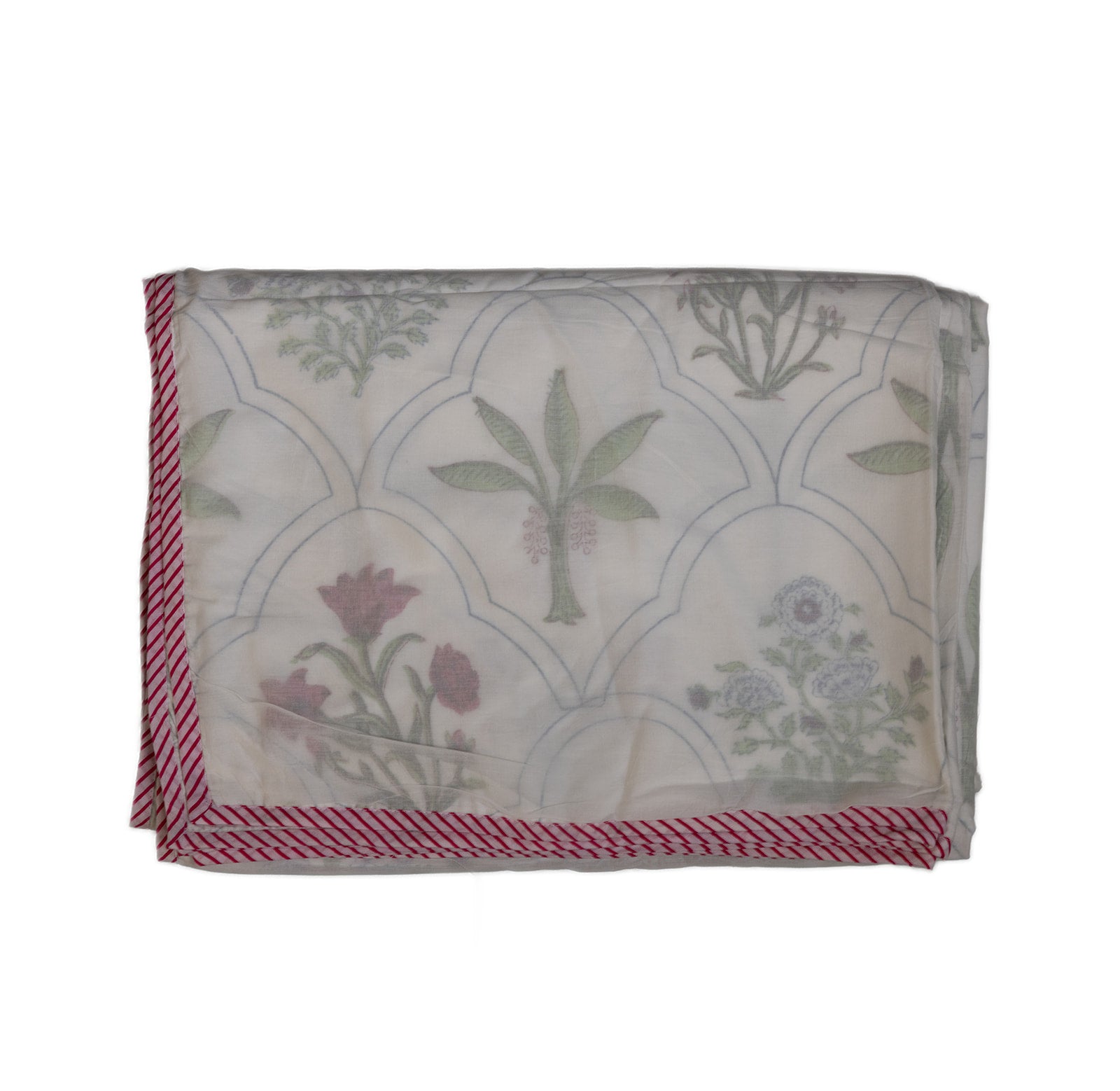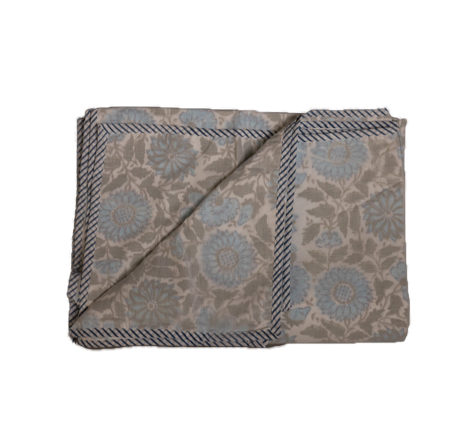 - hand block printed, three layers of light-weight cotton stitched together with contrast bias binding