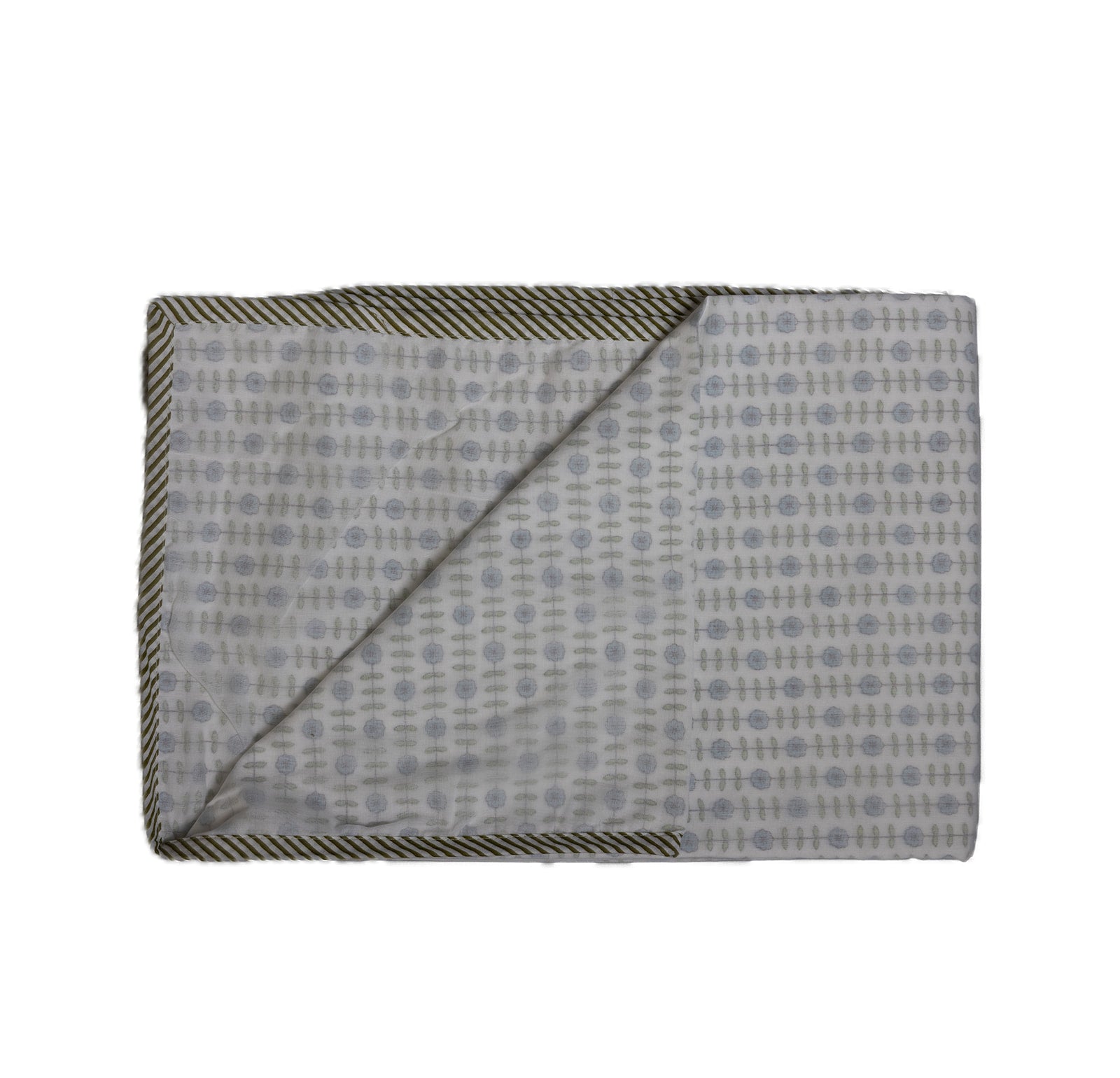 Traditionally, the patterned fabric of the dohar is muted by the external layer of soft cotton on the outside, as in these dohars. Perfect to lay under for an afternoon siesta or as a blanket with or without a sheet in summer. You'll thank us for it!