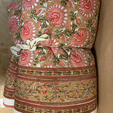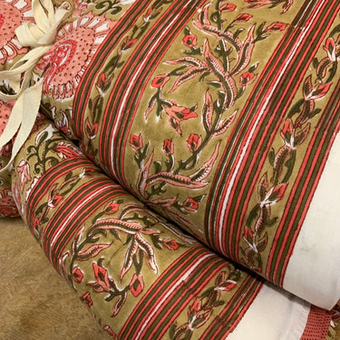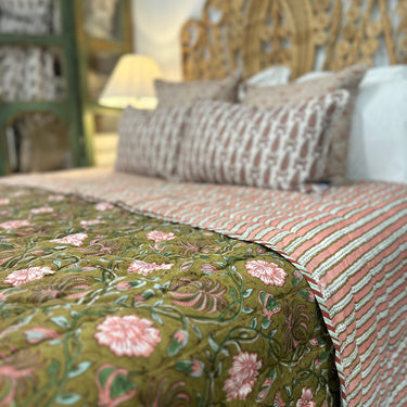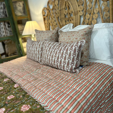 From the wonderful Sonu Joshi, a woman of incredible style and whose business ticks all our boxes of looking after workers and the environment whilst ensuring the ancient tradition of block printing continues into the future, come these lovely quilts. Hand block printed, wadded in beautiful cotton in lovely soft cotton. A recipe for a good night's sleep and a beautifully presented bed.