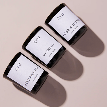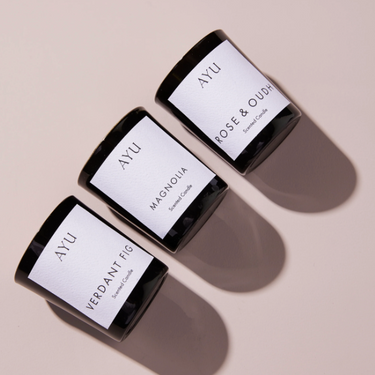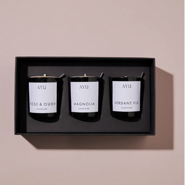 So, discover Ayu's trio mini candle gift sets, featuring their scented candle collection edited into two gift sets, offering the ultimate natural olfactory experience to your space. Each set contains 3 x 70g hand poured candles using a blend of 100% soy and coconut wax.