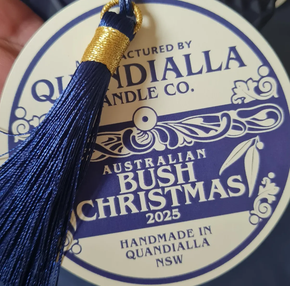 Quandialla's most popular candle, the Bush Christmas Candle is now available for 2025! This truly Australian fragrance evokes memories of the Aussie Bush with essential notes of fresh blooms, clove, fir needle and fresh green leaves. Softens out to tones of sweet jasmine, patchouli, eucalyptus and musk in the base notes. This candle is made in limited numbers each year so be quick to secure your candle this Christmas.
