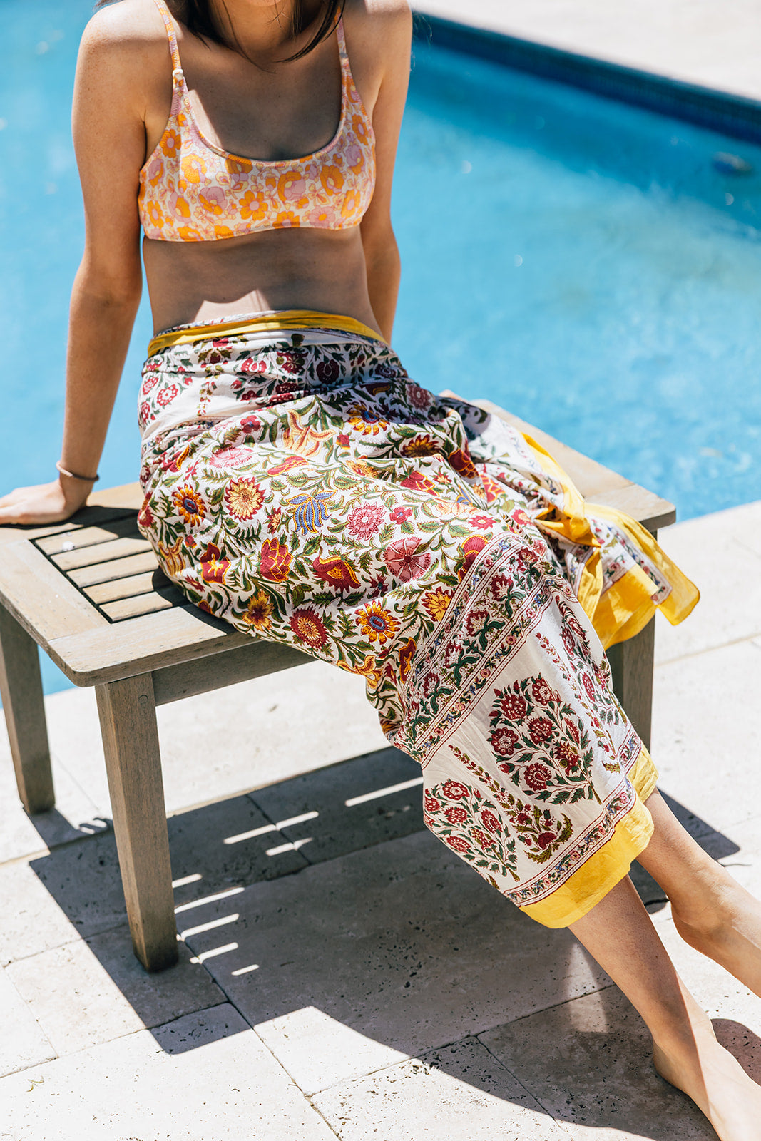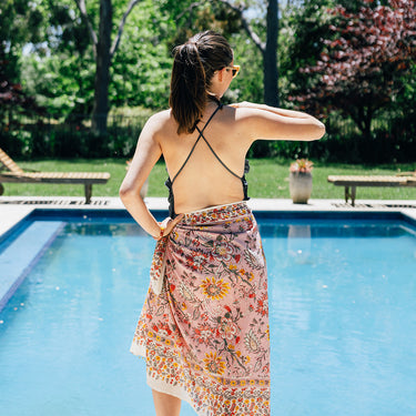 Check out our pretty Anokhi sarongs! The easiest way to elevate your beach or poolside look anywhere, anytime. The perfect light-weight shawl in spring through to summer and autumn and an elegant, finishing touch to an outfit. And in summer, our hand block printed sarongs ramp your beach/poolside look to super glam. The ultimate multifunctional piece of clothing!