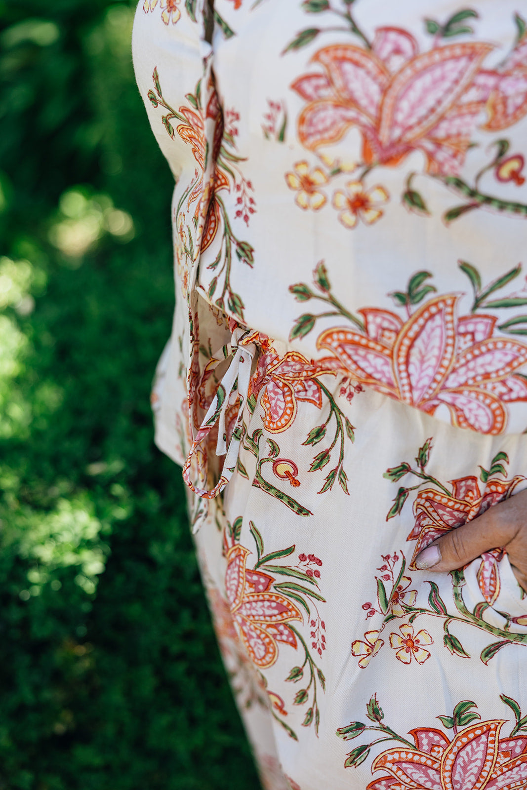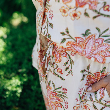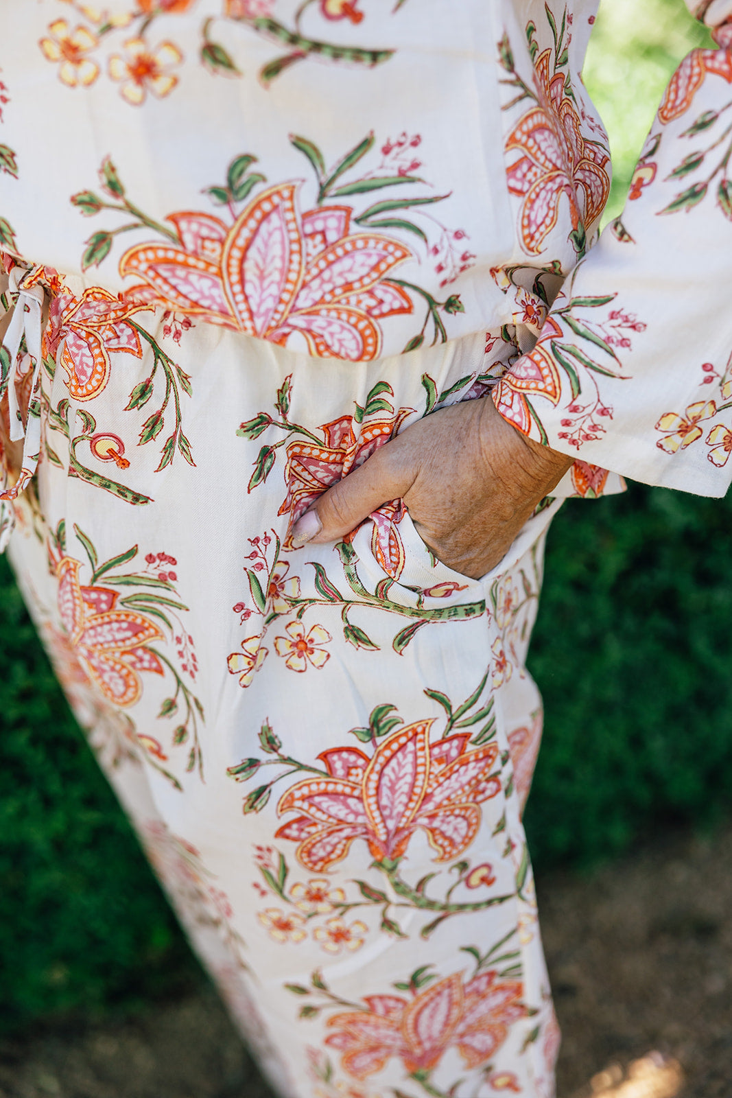 Carefully and ethically block printed and made by Anokhi, the great Indian textile business which was created to preserve traditional Indian handicrafts. Anokhi has won many awards from the Indian government for its careful environmental practises and for its staff-friendly workplace.