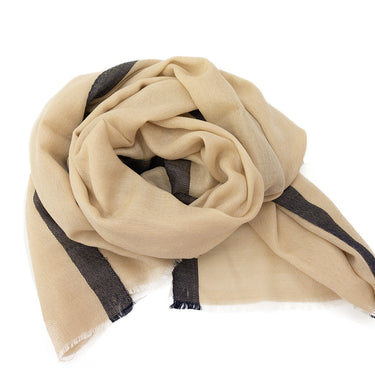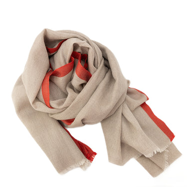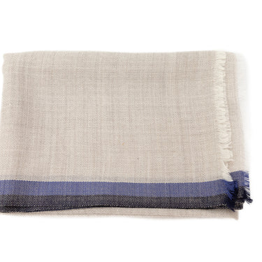 Super fine Australian Merino wool stoles. Natural, undyed wool with elegant coloured stripe along the edge. Light enough to wear under a jacket and warm enough to throw on as you charge out the door.