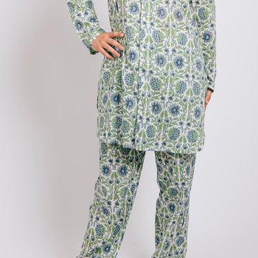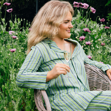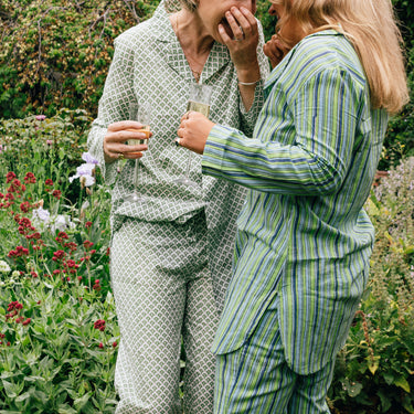 We have two colour ways in these long pyjamas: green & blue (as seen here), or gorgeous pink & green (see here). Long sleeves and pants not your thing? Check our our short summer PJ sets in either the green & blue or pink & green colour way.