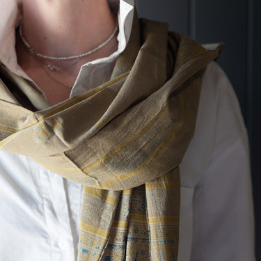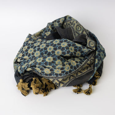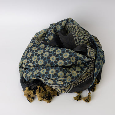 Truly lovely Ajrakh cotton stole made using natural vegetable and mineral dyes, measuring apporox 198cm x 56cm. These are unique, one-off pieces.