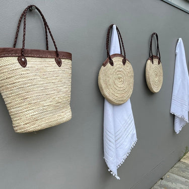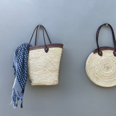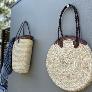 Hand woven exclusively for Merchant Campbell in Marrakesch from sustainable straw, our Morrocan baskets & bags are just so lovely with their sturdy leather trim and handles.