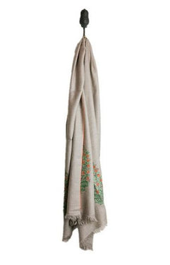 Orange and Green Floral Embroidered Natural Cashmere Shawl