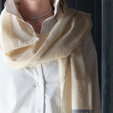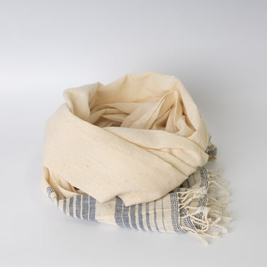 Ramji Maheshwari lives near Bhuj in Gujurat, India and is a master weaver, internationally renown for his skills which he learnt from his father and his father before him. As it was a traditional craft of his family, he learned weaving while playing on looms with his father and grandfather. He uses organic, locally grown cotton and organic indigo to hand loom these wonderful pieces for us in a pit loom beside his house.