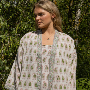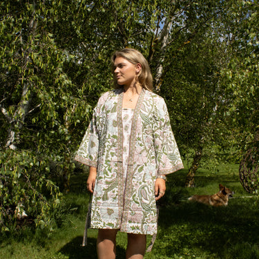 We've covered all bases with both short and long kimonos in a range of patterns. If you love this pink & green colour way but would like something longer, head here. If green & blue is a little more 'you', we have long options here and shorter ones here.
