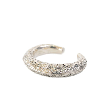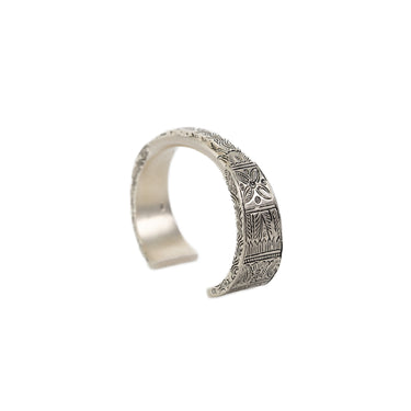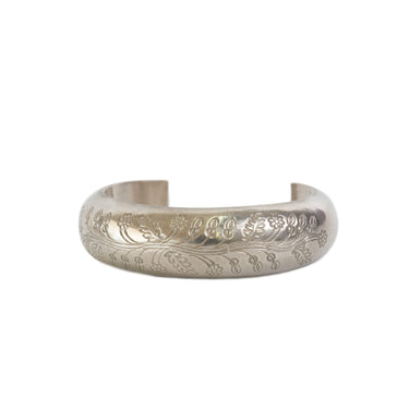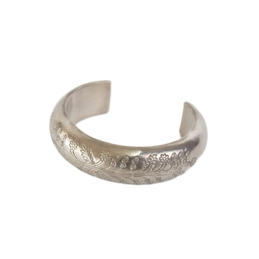 Beautiful, one-off sterling silver and traditional 98% silver cuffs from Northern Thailand. Each one is hand-made and embossed with tradtional motifs, including flowers and fish.