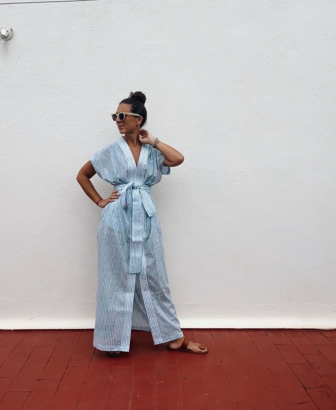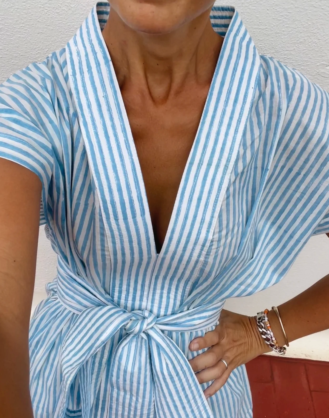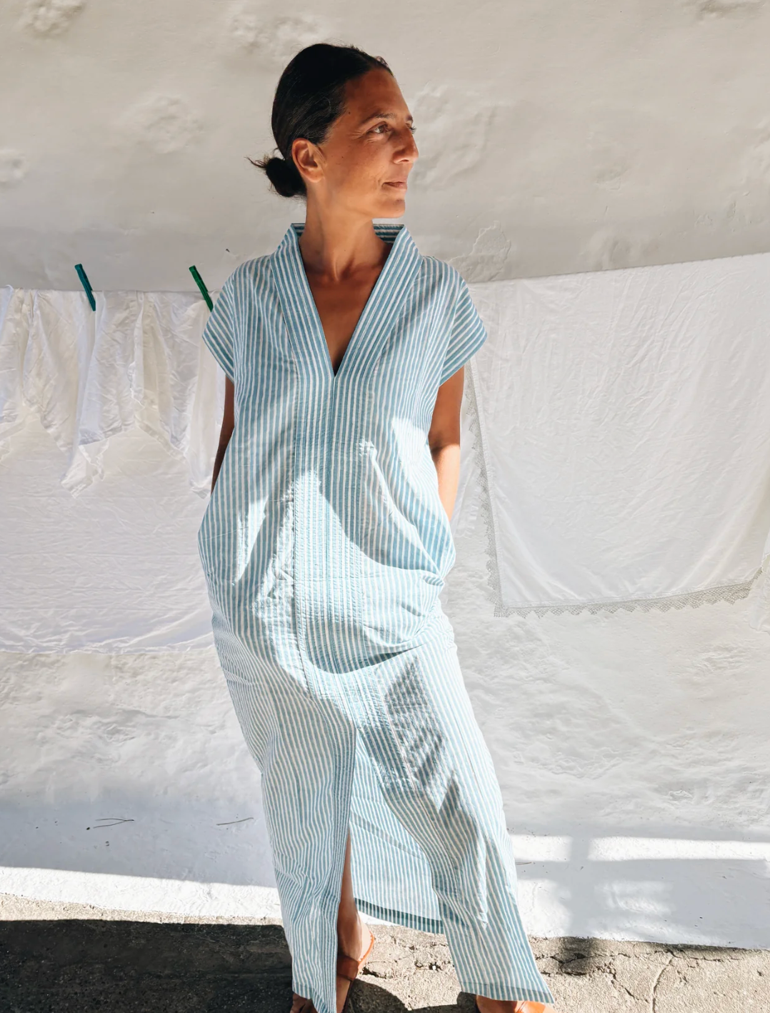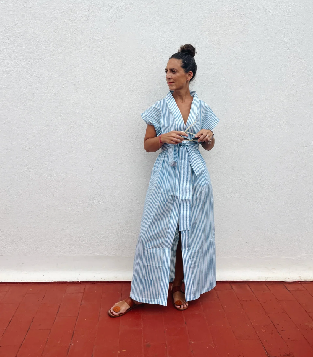 Fabulous handloom cotton kaftan in pretty blue & white stripe