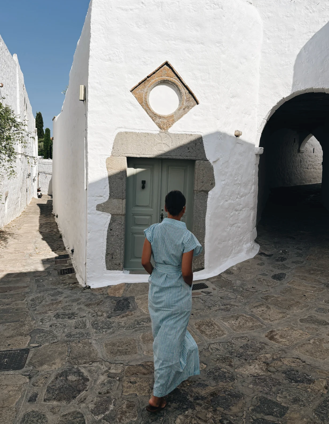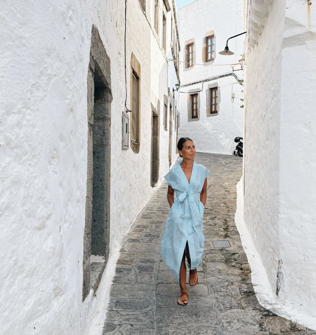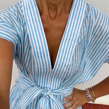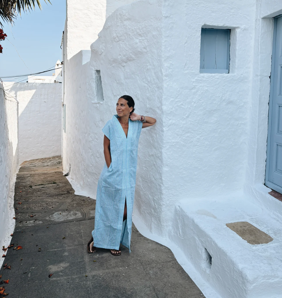 Fabulous handloom cotton kaftan in pretty blue & white stripe