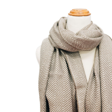 Lovely, soft and extra warm pashmina with a smart chevron stripe.  Perfect to snuggle into when the icy winds blow.