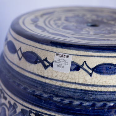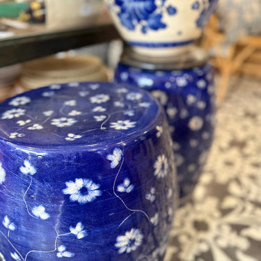- Approximate dimensions: small drumstools are 45cm high by 35cm at their widest with a seat dimension of 26cm; medium drumstools are 50cm high by 40cm at their widest with seat dimenions of approx 30cm; the larger solid blue drumstools are 52cm high by 40cm at their widest with seat dimensions of approx 29cm.