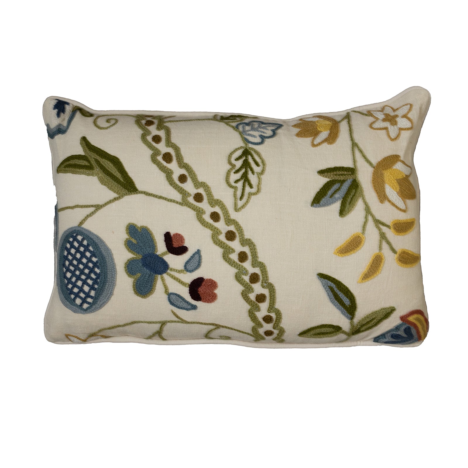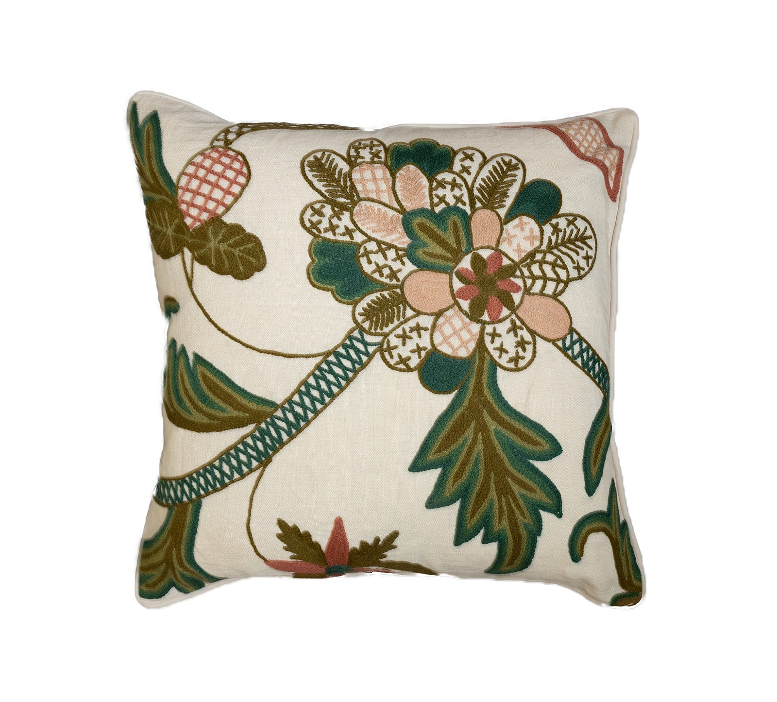 Stylish cushions are a clever and simple way to transform a room, and much less expensive than replacing or recovering a piece of furniture. Our beautiful hand-stitched woollen crewelwork and linen cushions from Kashmir have centuries of tradition and skill behind them. Available in two patterns with different colourways and three sizes, the lumber 35x55cm cushion is lovely placed horizontally along a sofa or a bed. The European 58.5x58.5cm cushion sits beautifully on a bed as a pair or on a large sofa as a feature, and the 48x48cm size cushions are the perfect scatter cushion size for chairs, sofas and beds.