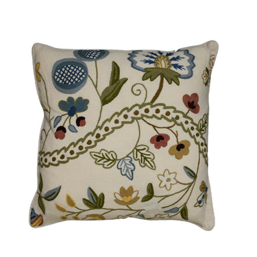 These cushions reflect the patterns and traditions of the magical part of the world that is Kashmir. Each pattern, which was exclusively designed for Merchant Campbell, is block-printed onto the fabric, using specially made and designed wooden block prints for crewelwork. The woollen crewelwork is then stitched, either at home amongst their families or with other people in the village hall or at another home. The people who stitch these beautiful patterns are often seen as the deep thinkers, the wise people of the community, and it's not uncommon for villagers to drop in and sit with them, seeking their advice and thoughts on tricky subjects.