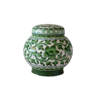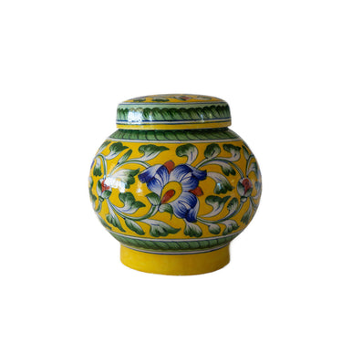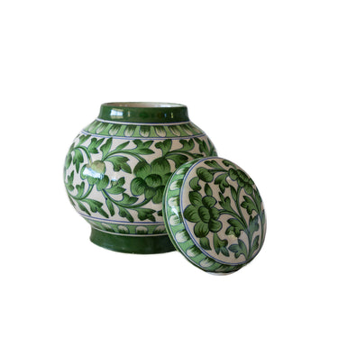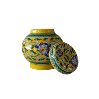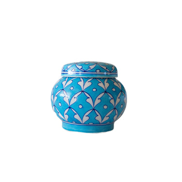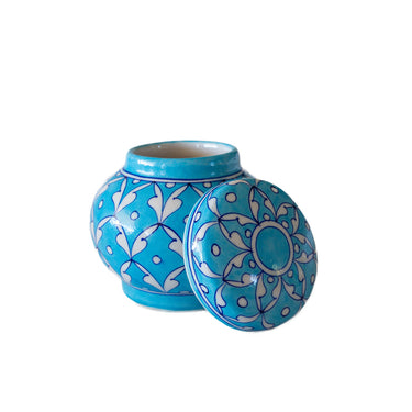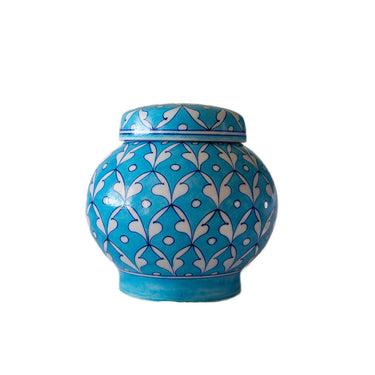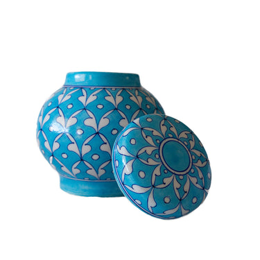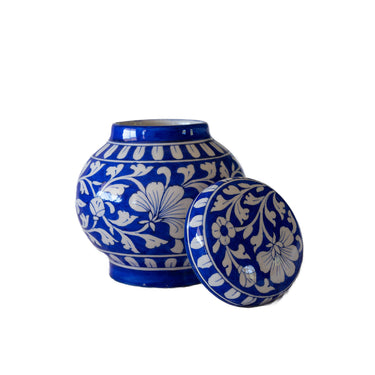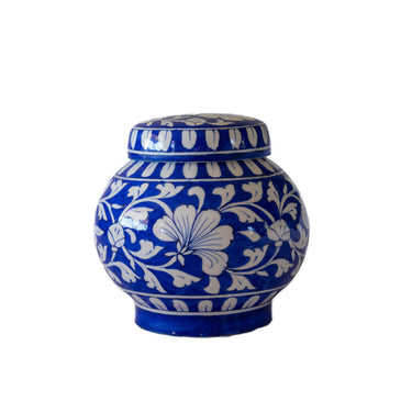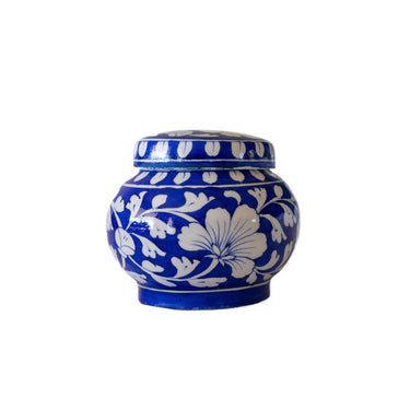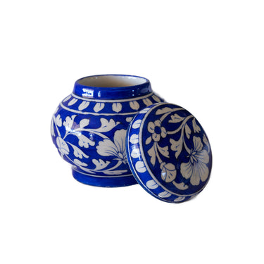 Celebrate the beauty of traditional Indian craftsmanship with the Neerja Rose Bowl with Lid, hand-painted by skilled artisans near Jaipur using age-old blue pottery techniques. Each bowl features a graceful rounded silhouette with a snug lid, making it both functional and decorative—perfect for storing keepsakes, potpourri, or simply as an eye-catching accent piece.
