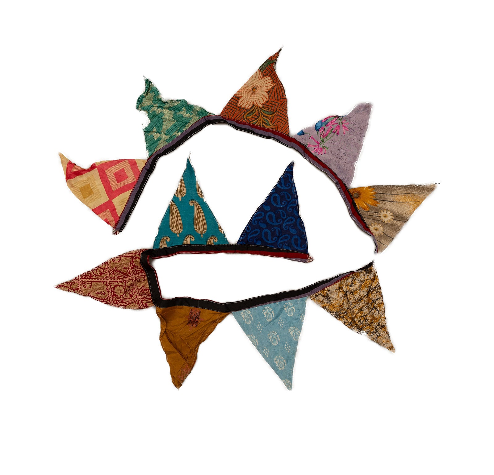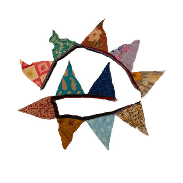 Add colour, joy, and a touch of handmade charm to any space with our recycled sari bunting. Each garland is lovingly crafted from reclaimed sari fabric, giving new life to beautiful textiles that would otherwise go to waste. The result is a vibrant, eclectic mix of colours and patterns — no two pieces ever the same.