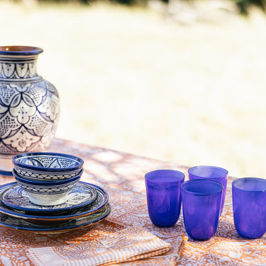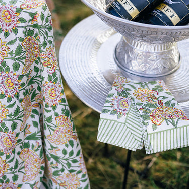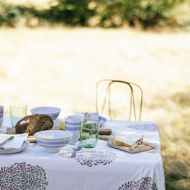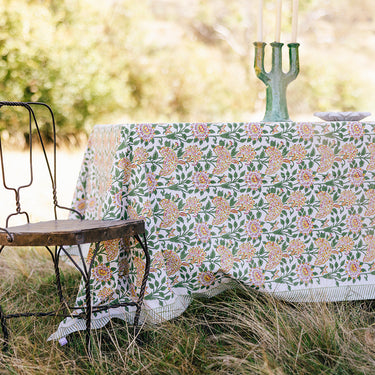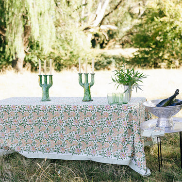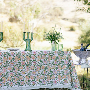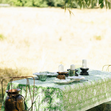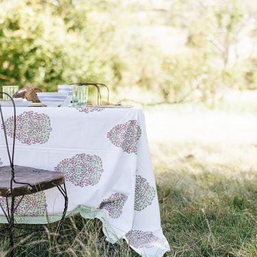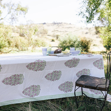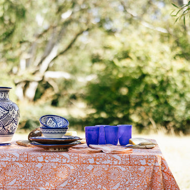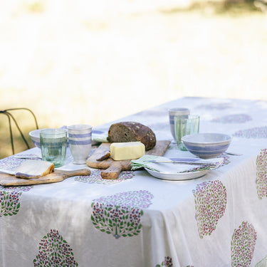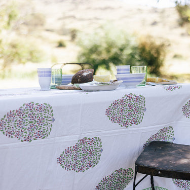 A tablecloth in one of our super our pretty hand block printed designs will freshen up your table and brighten up any room, courtyard or picnic. There's a colour and pattern here to suit so many interiors and situations!