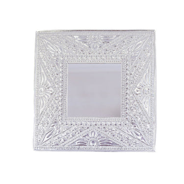Indah Sari, a beautiful Balinese woman, makes these pressed tin mirrors for Merchant Campbell.  Her family business has traditionally made pretty pressed tin offering boxes for religious ceremonies for many years.  Indah has adapted her business in order to grow and now makes these mirrors, as well as lovely pressed tin ornaments, rubbish bins and all sorts of pretty things.