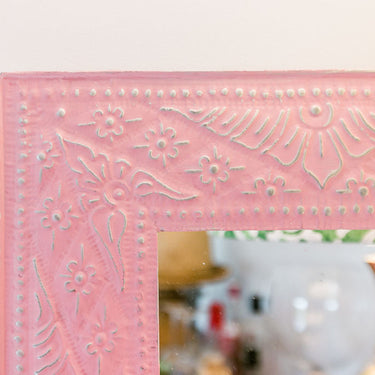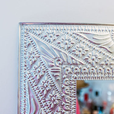 How about a pretty mirror to hang above a chest of drawers, a dressing table or maybe in the powder room or laundry?  Lightweight and easy to hang, our pressed metal mirrors are the solution to the timeless problem of needing a mirror but not having anywhere to hang it.  Why, you ask?  Because these beauties are so lightweight you only need double sided hanging tape to pop them up on the wall.  Clever, eh?