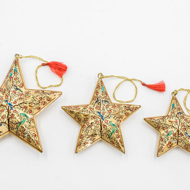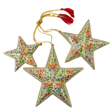 Our ever popular hanging Christmas stars are back again. Hand-made and painted exclusively for Merchant Campbell by Kashmiri artisans whose roots go back to the 15th century, our sets of three hanging Christmas stars are very, very special and very, very lovely.