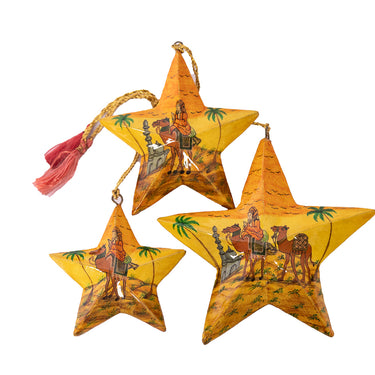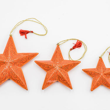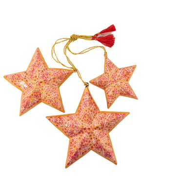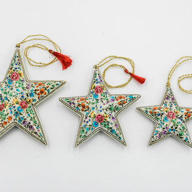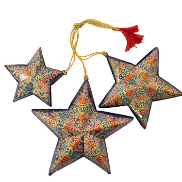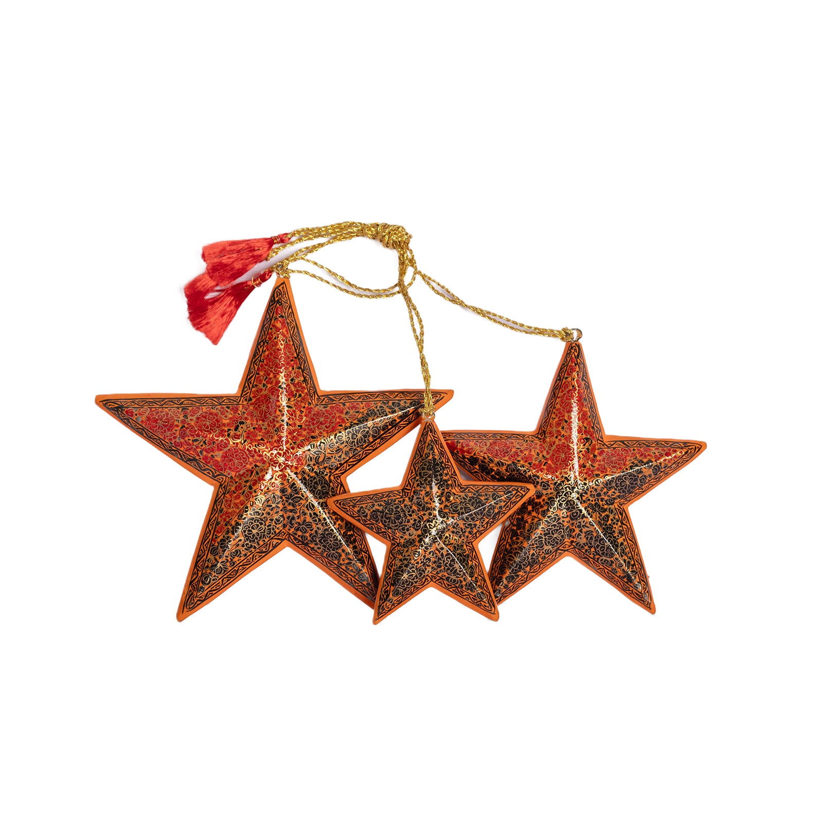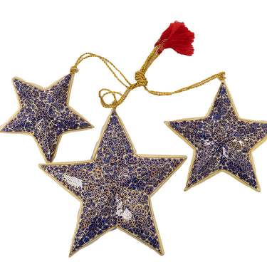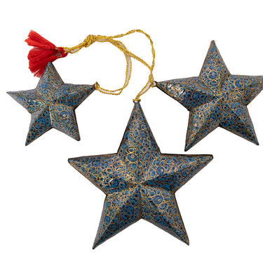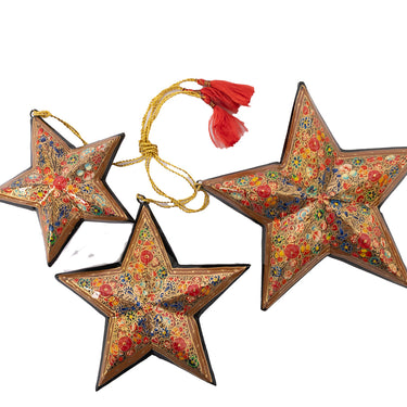 Hand-Painted Hanging Papiér Mâché Christmas Stars (3)