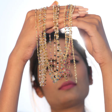 A beautifully handcrafted mala necklace with natural semi-precious gemstones, Mangal gives a starry vibe to your whole persona. Perfect to layer with other dainties, or to wear it solo, a truly versatile piece in every manner.