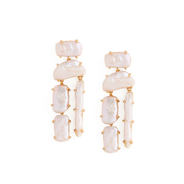 Each earring is made from 5 large beautiful, freshwater baroque pearls of such interesting shapes, set in 22ct gold plated brass.