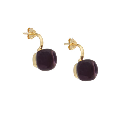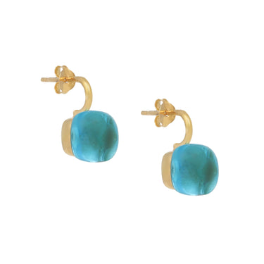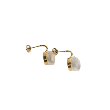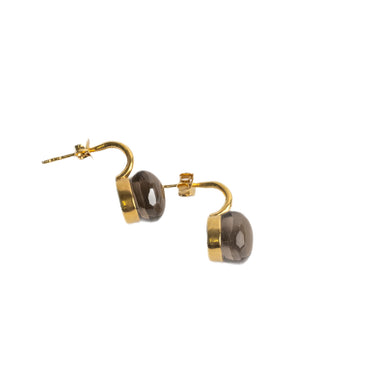 Handcrafted earrings of natural semi-precious stones on a base of mother of pearl, set in 18ct gold plated sterling silver.