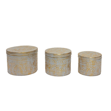 Available as a set of three in silver, bright red with a touch of gold or white with a touch of festive gold.