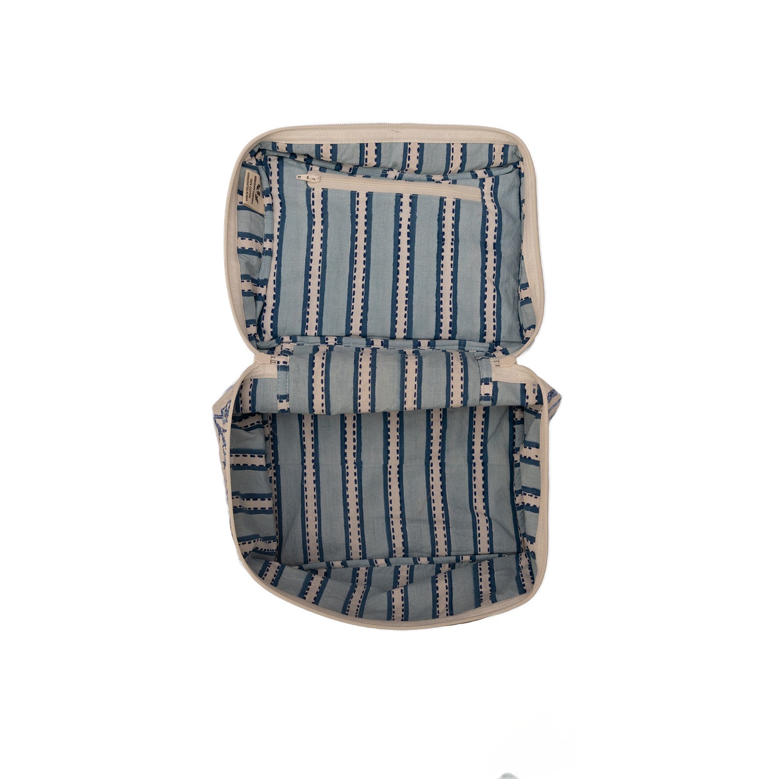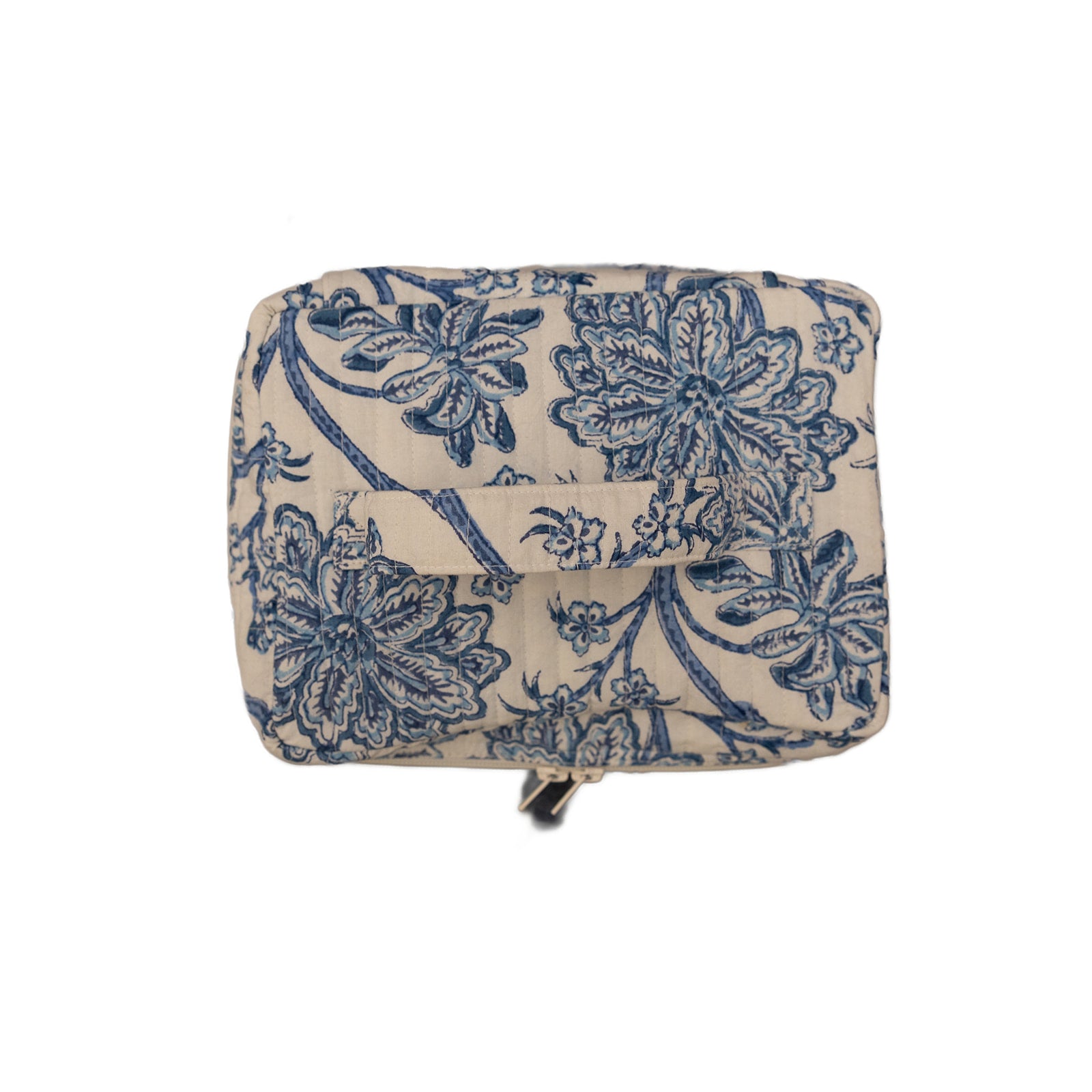 Keep your cosmetics and travel essentials beautifully organised with our range of hand block printed blue and white cotton beauty cases, created exclusively for Merchant Campbell in Jaipur, India. Each case is printed by hand using traditional wooden blocks, a time-honoured craft that brings depth, texture, and individuality to every design.