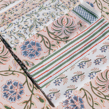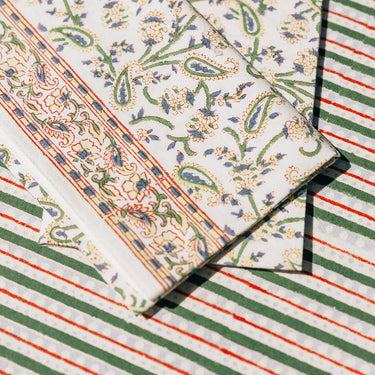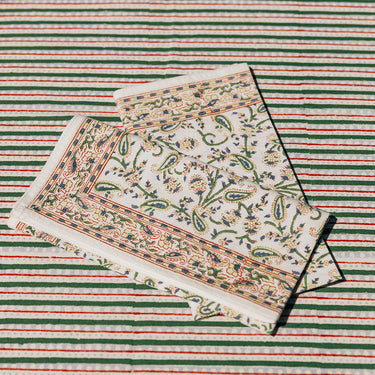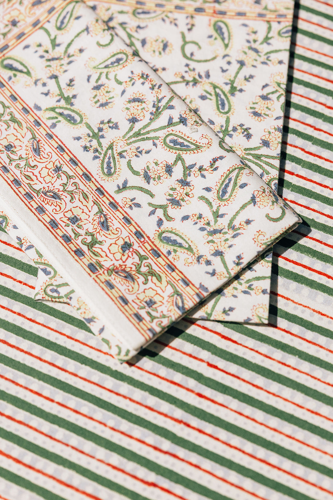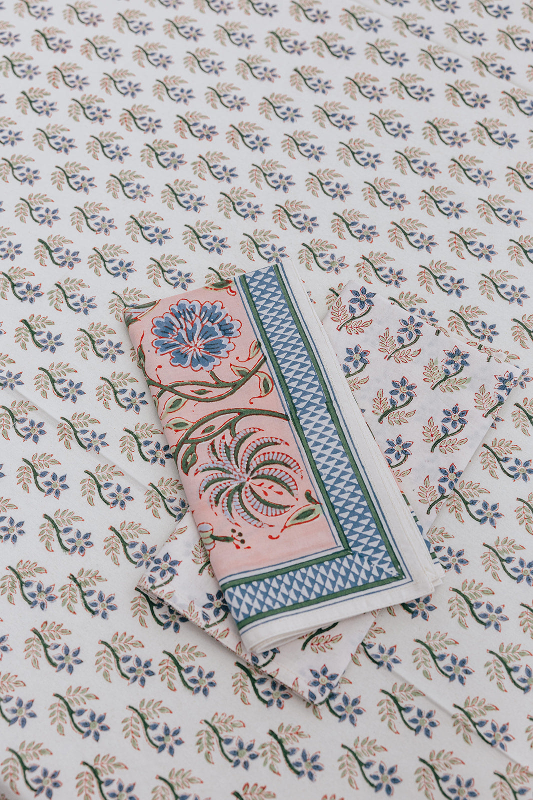 Bring colour, craft, and tradition to your table with our multicolour range of hand block printed cotton napkins, created exclusively for Merchant Campbell in Jaipur, India. Each napkin is printed by hand using generations-old techniques, where carved wooden blocks are dipped in natural dyes and pressed onto the cloth to create intricate, lively designs.