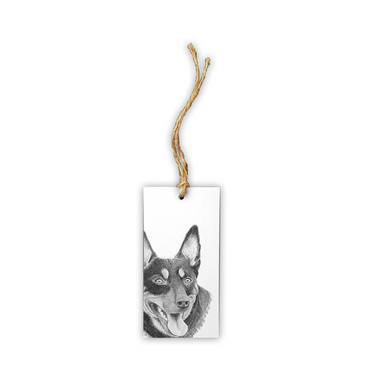 - Original pencil drawing printed on tag with jute tie