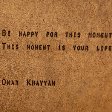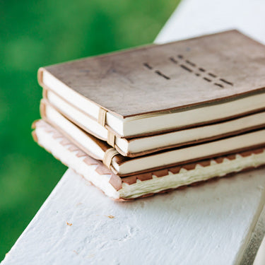 leather-bound notepads with quotes and hand-stitched spines
