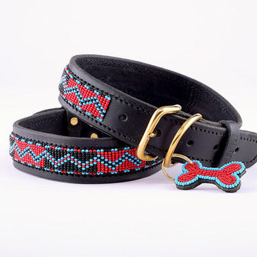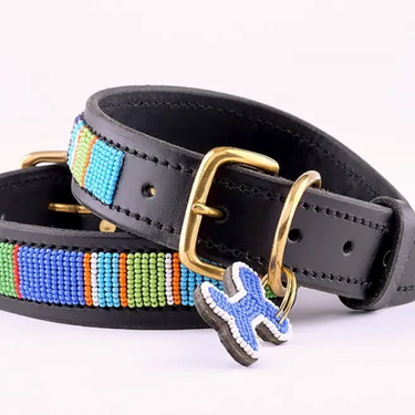 Kenyan beaded leather belts are made of soft vegetable tanned cowhide leather. Each bead is made of Czech glass and meticulously sewn by hand to a traditional pattern. The belts are stitched all the way through using Japanese fishing thread ensuring they will never come apart and the buckle is made of solid re-cycled brass.
