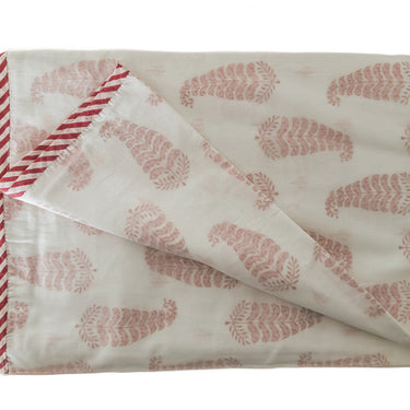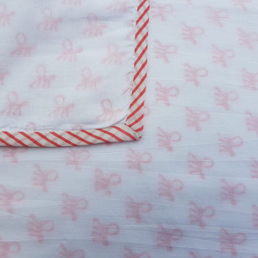 These traditional Indian summer blankets or wraps for babies are comprised of three sheets of mulmul, an airy, ultra-breathable cotton muslin once exclusive to royalty. Layers are stitched together, not quilted.  Natural cotton will help keep baby cooler in summer and warmer in winter, and the subtle tones and prints blend effortlessly into any nursery decor.