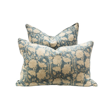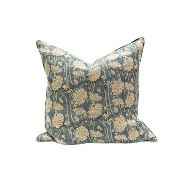 floral block printed linen cushion cover